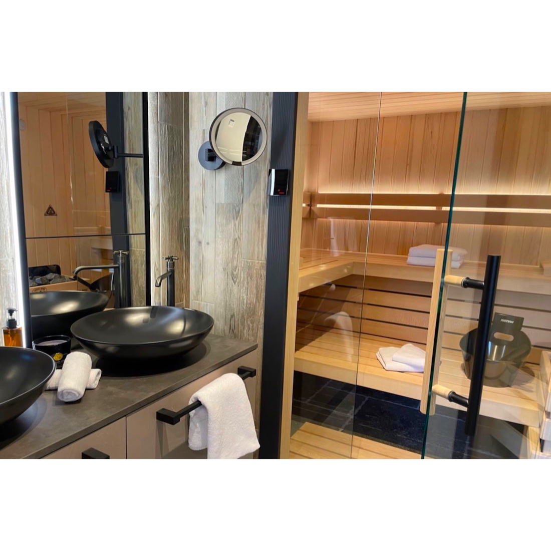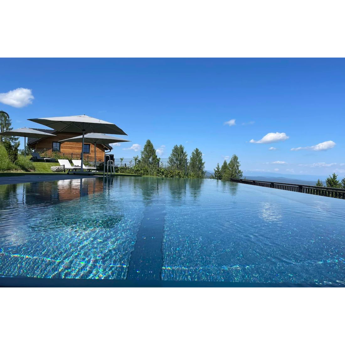 Das Beste kommt (nicht immer) zum Schluss: Ein Resorteigenes Wellness- und Fitness- Haus steht unseren Gästen kostenlos zur Verfügung. Hier können Sie sich wahlweise ausgiebig entspannen, auf den Fitnessgeräten fit halten, oder im ganzjährig beheizten Infinity- Pool schwimmen und dabei den phänomenalen Panoramablick über die Dächer der Alpen schweifen lassen. Auf Wunsch besteht optional die Möglichkeit, sich gegen separate Zahlung ausgiebig massieren zu lassen.