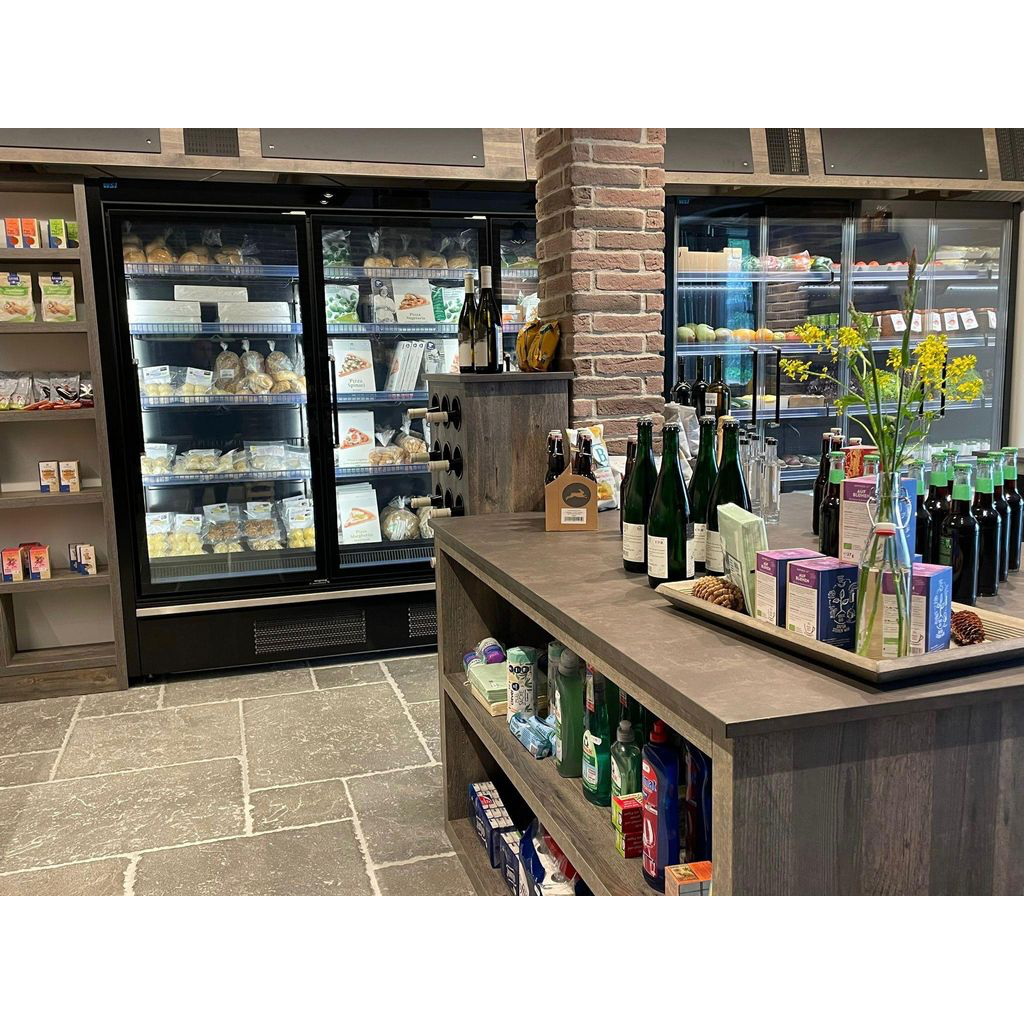 Die Designer- Küche ist mit hochwertigen Elektrogeräten und einem SMEG- Kaffeevollautomaten ausgestattet. Frische, regionale Lebensmittel – teils in Bio- Qualität – kann man im nur wenige Meter entfernten Dorfladen kaufen. Ganz gleich ob frische Brote und Backwaren, Obst und Gemüse, Kärntner Wurst- und Käsespezialitäten, oder erlesene Weine und Getränke. Auch Hygieneartikel gibt es hier zu kaufen.