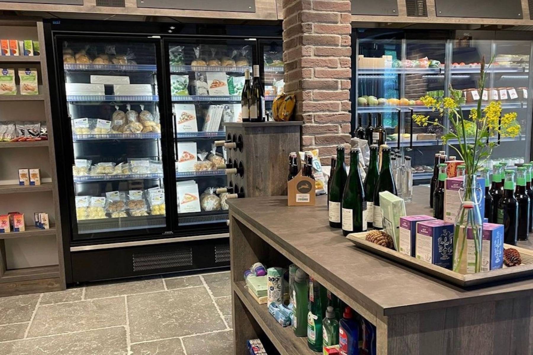 Die Designer- Küche ist mit hochwertigen Elektrogeräten und einem SMEG- Kaffeevollautomaten ausgestattet. Frische, regionale Lebensmittel – teils in Bio- Qualität – kann man im nur wenige Meter entfernten Dorfladen kaufen. Ganz gleich ob frische Brote und Backwaren, Obst und Gemüse, Kärntner Wurst- und Käsespezialitäten, oder erlesene Weine und Getränke. Auch Hygieneartikel gibt es hier zu kaufen.