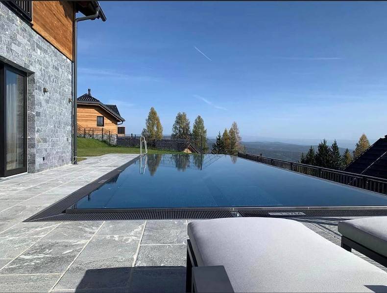 Chalet Tomtegl auf der Hochrindl bei Kärnten mit Kamin, Sauna und beheiztem Infinity- Pool mit Blick über die Alpenlandschaft