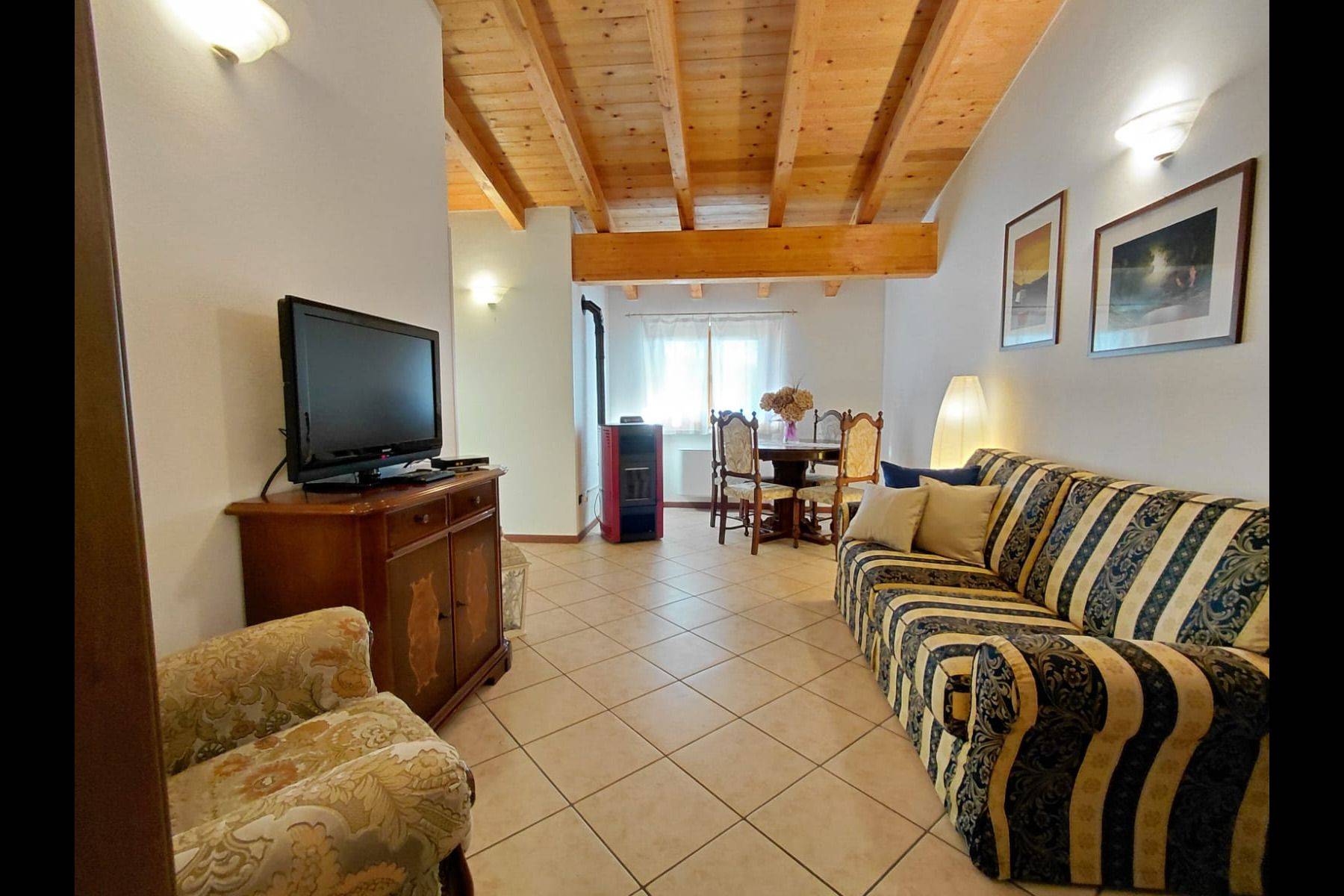 Sie hat einen nach Süden ausgerichteten Balkon mit traumhaftem Blick auf den Monte Baldo und den See.