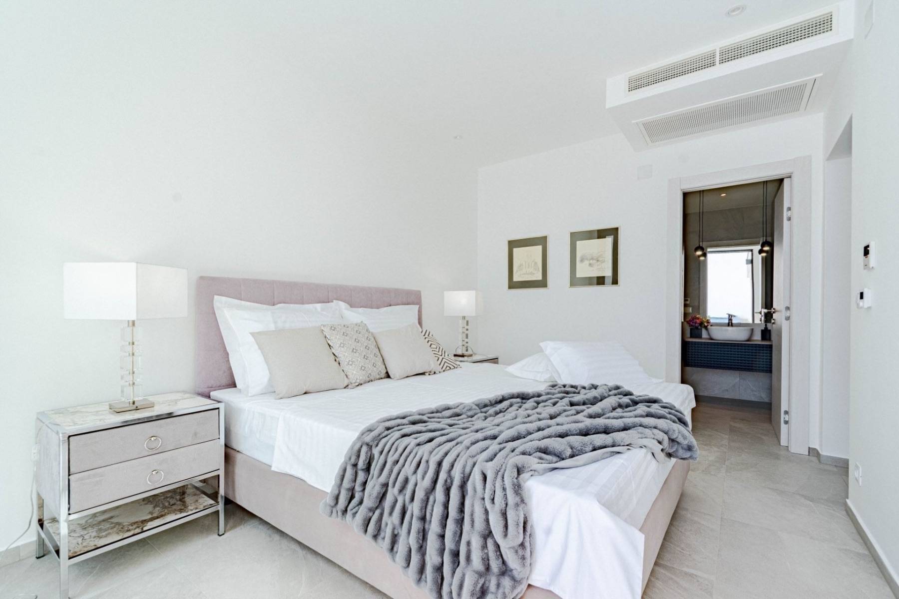 Die moderne Villa liegt inmitten von mediterranen Gärten und Pinienwäldern auf einem 1.000 qm großen Grundstück. Von der großen Terrasse mit Pool gelangt man über eine Treppe direkt an das Meer zum Privatstrand.