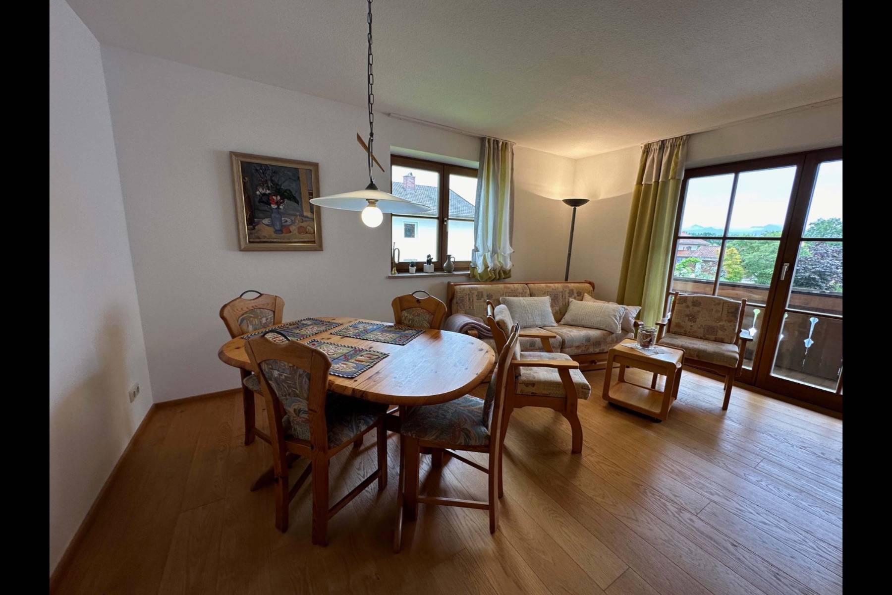 Die Ferienwohnung „Cäcilia“ liegt ruhig am Ortsrand von Chieming und bietet auf 60 m² viel Platz für bis zu 4 Personen. Zwei möblierte Balkone mit Garten- und Bergblick sorgen für eine lichtdurchflutete, naturnahe Atmosphäre. Hier genießen Gäste Privatsphäre, Komfort und Nähe zum Chiemsee zugleich.