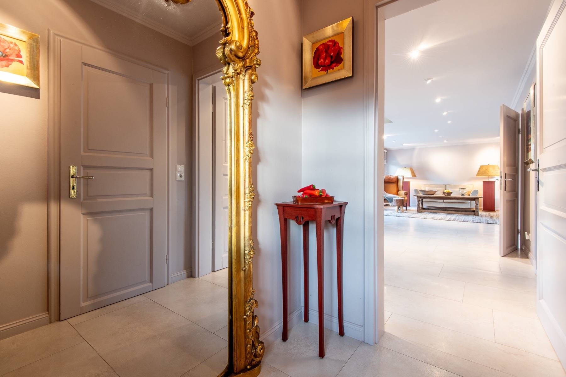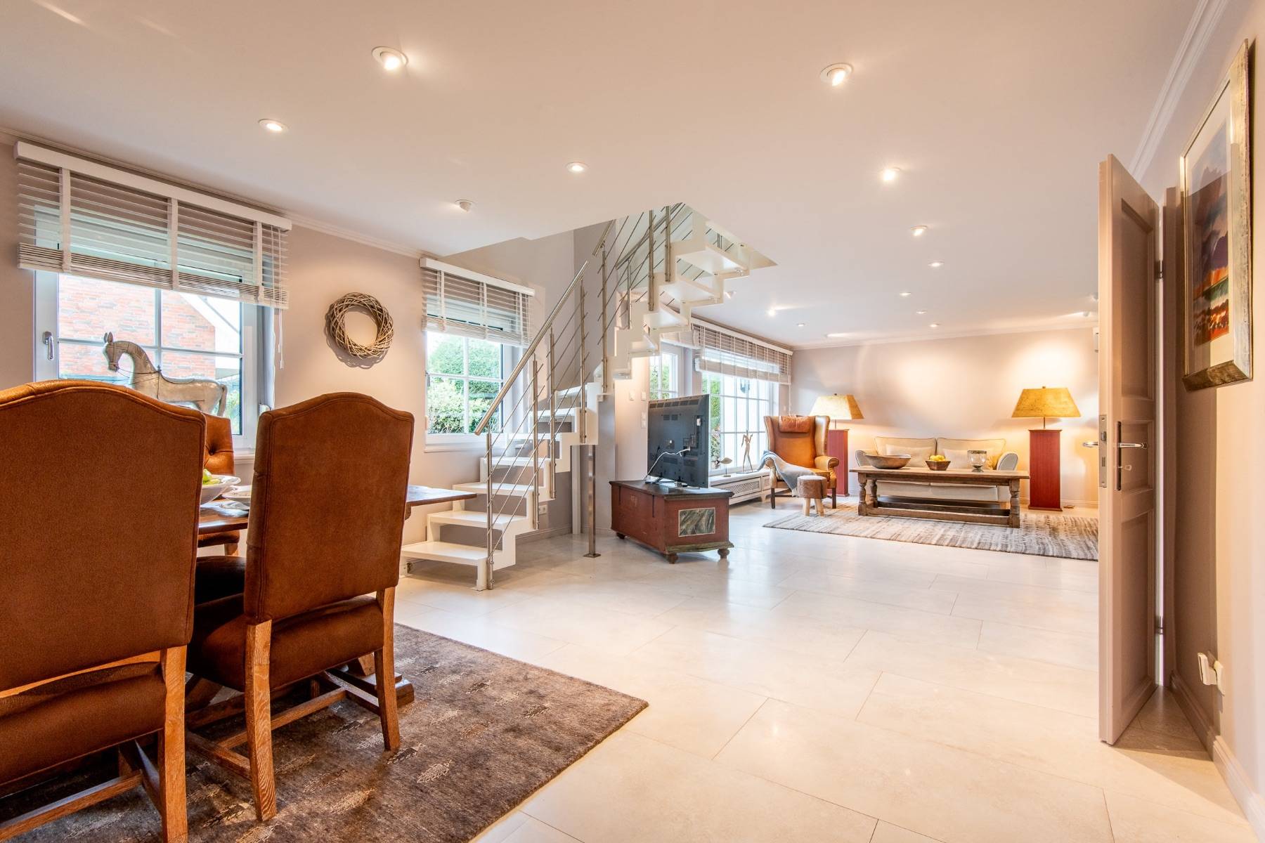 Das Feriendomizil besticht durch höchsten Komfort wie beispielsweise individuell verstellbare Holz-Plissees und teils elektrische Rolläden. Für ausreichend Wärme sorgt ein offener Kamin und eine Fußbodenheizung. Auf der Terrasse spendet eine elektrische Markise bei Bedarf ausreichend Schatten.