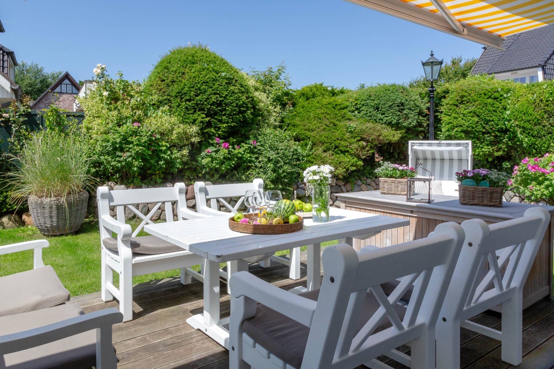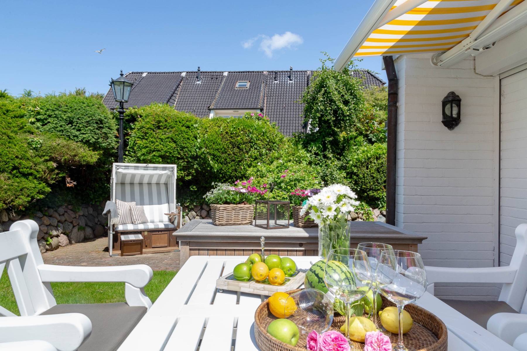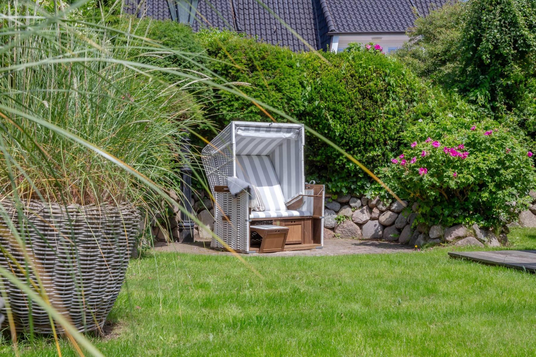 Bei dem Ferienhaus handelt es sich um ein Einzelhaus, welches sich über zwei Ebenen erstreckt. Im liebevoll angelegten Garten stehen zwei Sonnenliegen und Gartenmöbel von Garpa, ein Strandkorb und eine elektrische Markise für einen Relaxurlaub bereit.