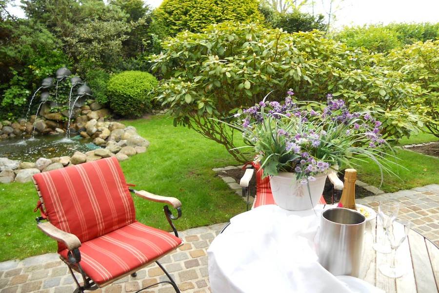 Lassen Sie sich von dem gemütliches Ambiente überzeugen! Entspannen Sie sich auf der Terrasse mit Markise und im Garten mit Springbrunnen.
