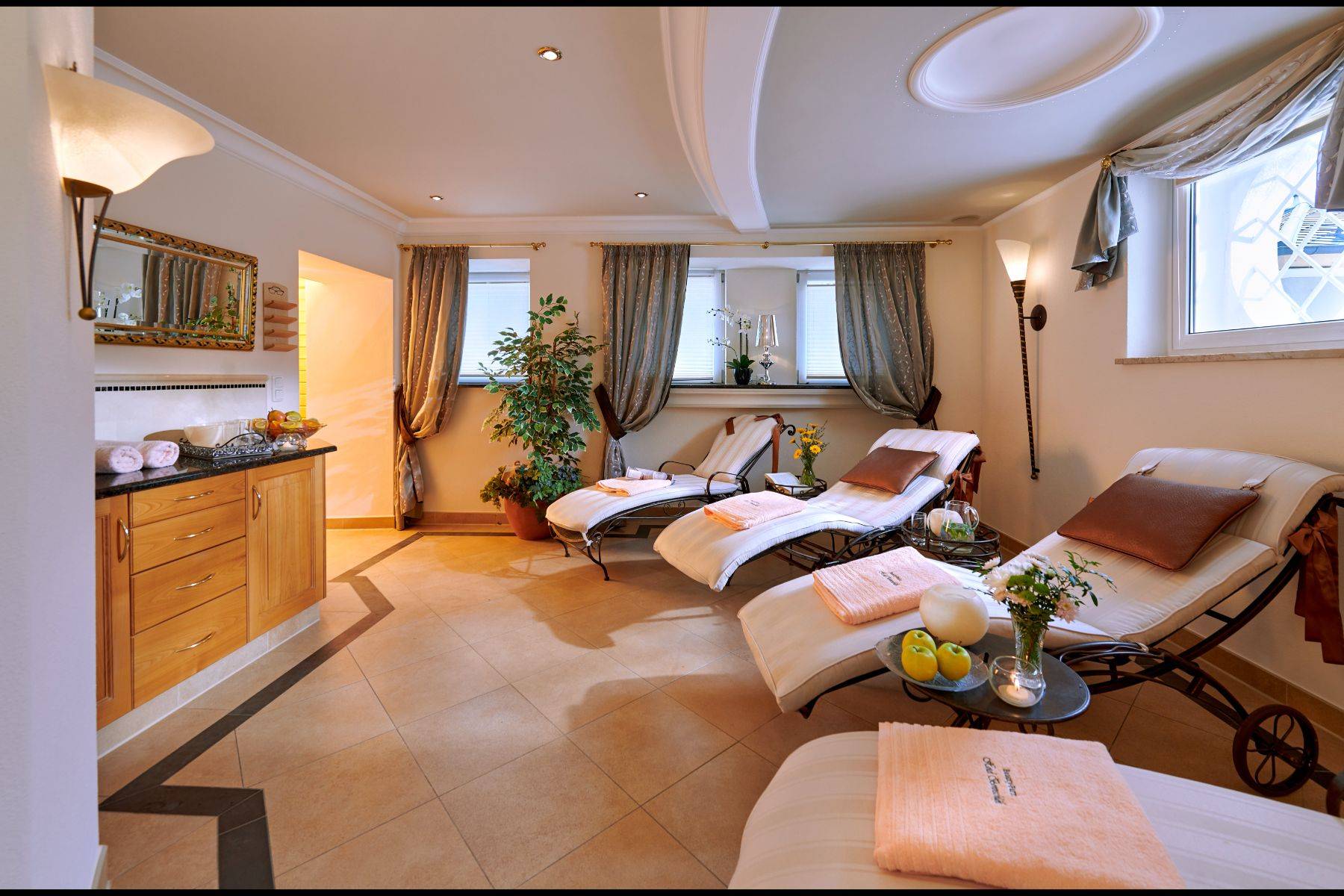 Im Haus steht Ihnen eine finnische Sauna, eine Infrarotkabine und ein Dampfbad zur Verfügung, sowie eine Auswahl an optionalen unterschiedlichen Massageanwendungen und Kosmetikbehandlungen.