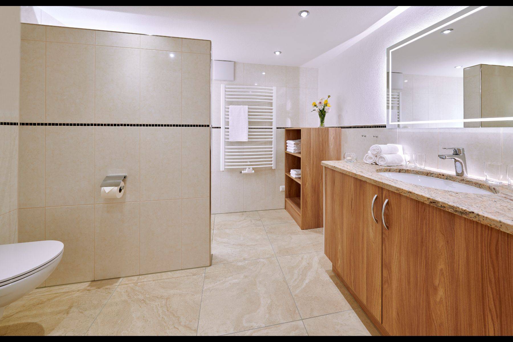 Badetuch Dusche Duschvorlage Fußbodenheizung Haartrockner Handtuch Handtuchheizkörper Seife Spiegel Walk- In- Dusche Waschbecken WC