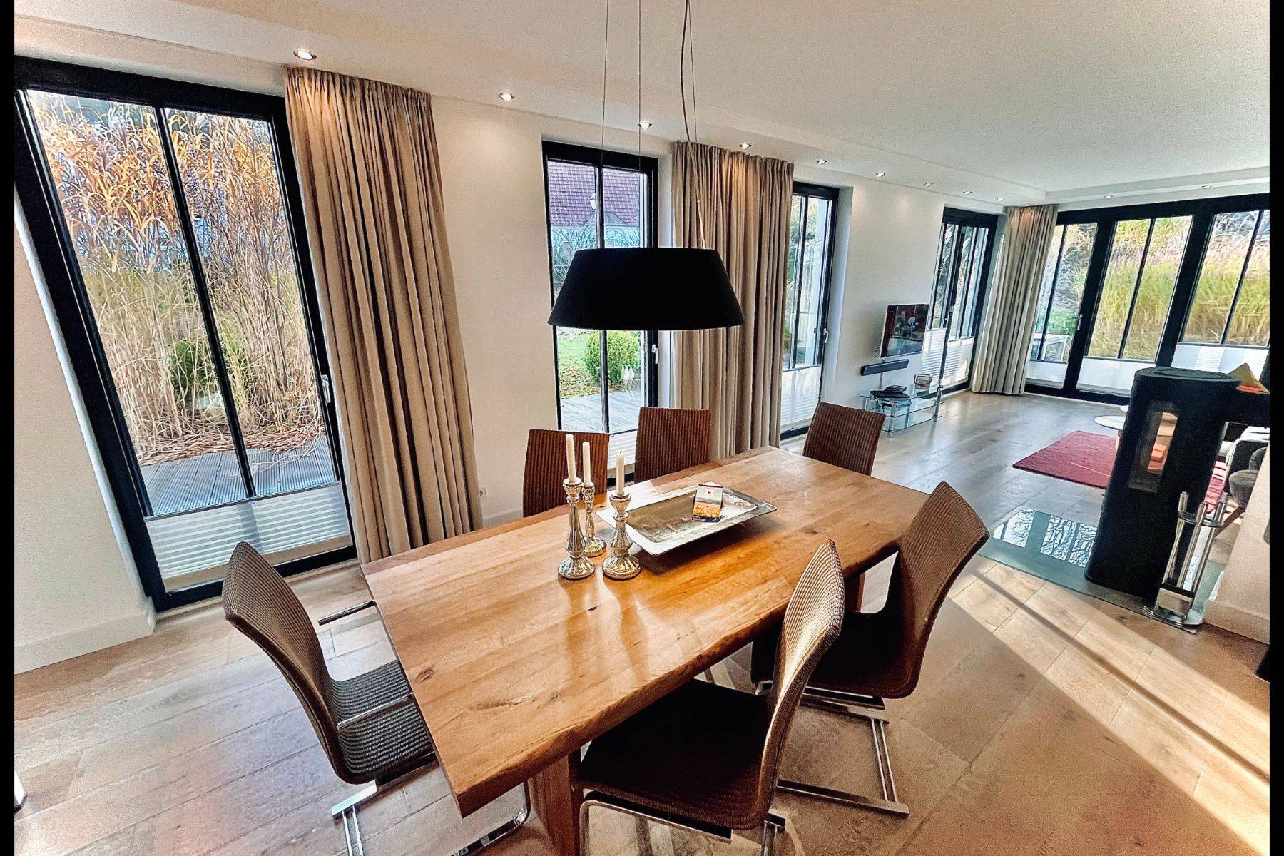 Luxuriöse Materialien – gekälkte Eichenböden, maßgefertigte Türen, Fußbodenheizung