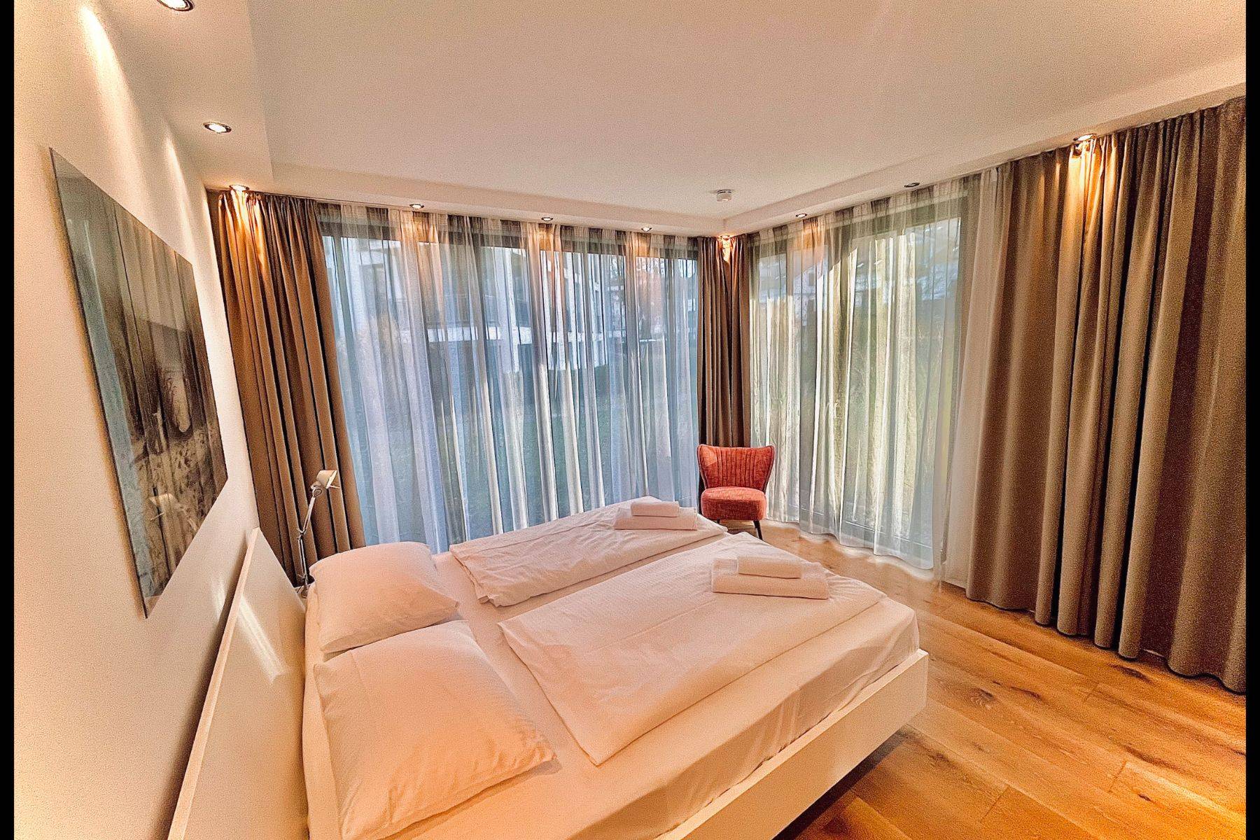 Zwei elegante Schlafzimmer mit jeweils eigenem Badezimmer