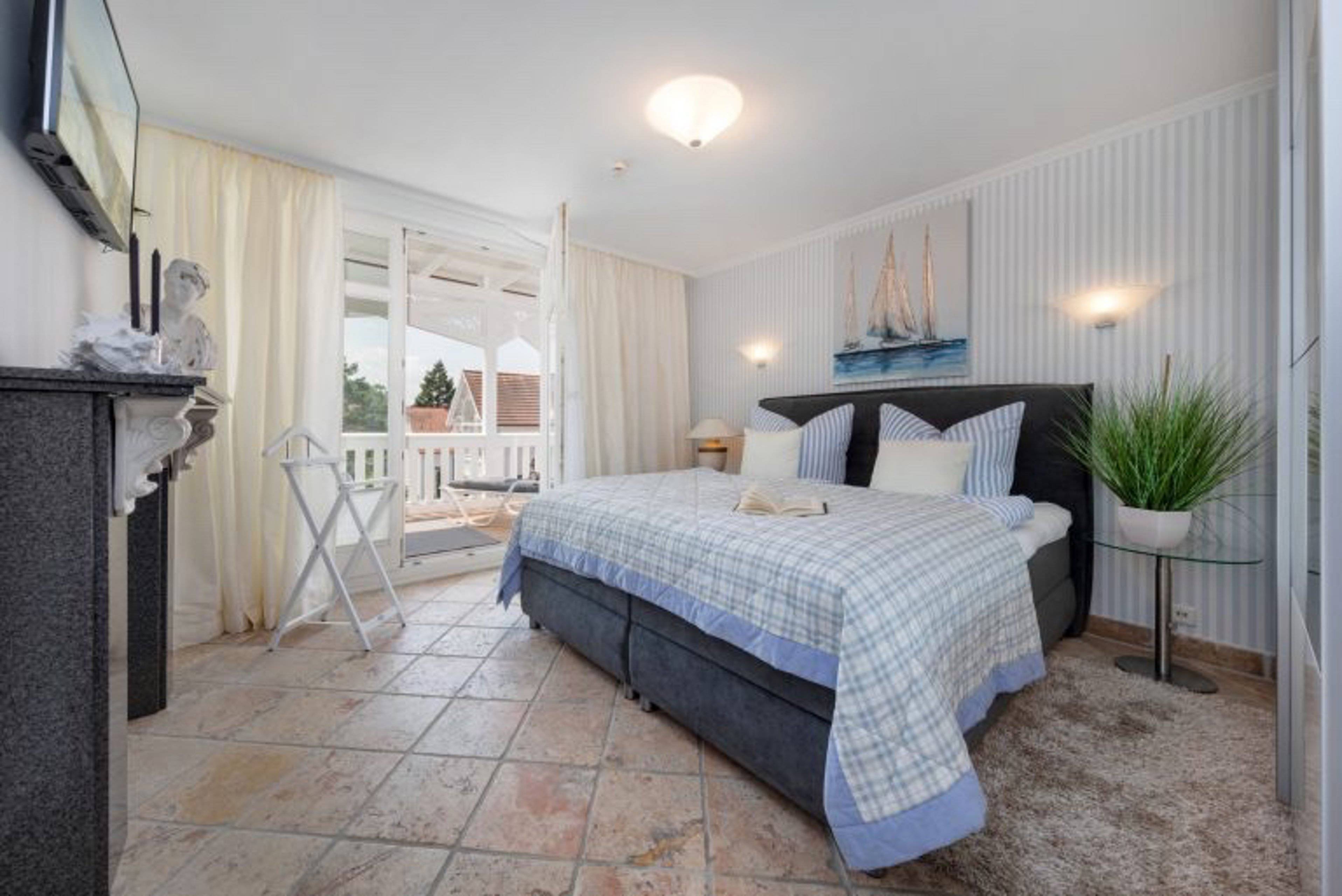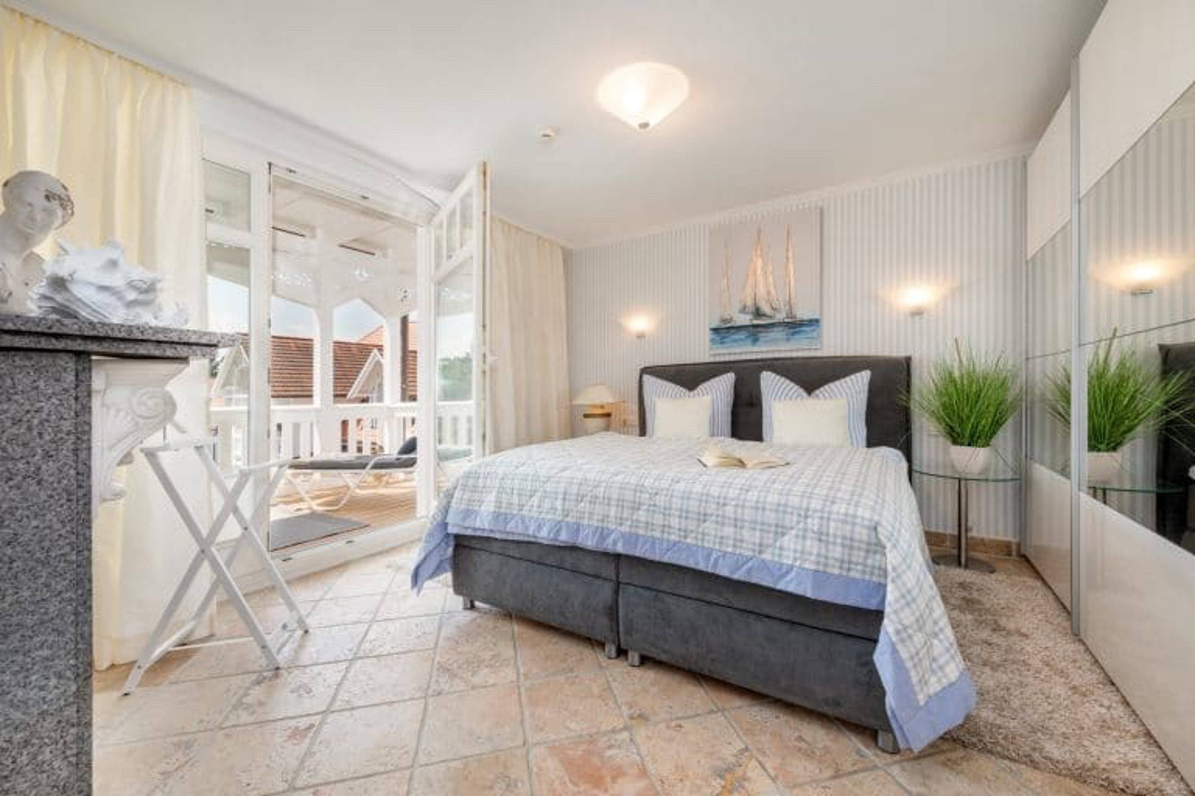 Balkonzugang Doppelbett Fenster Flatscreen Heizung Kleiderschrank Plissees Stummer Diener Vorhänge