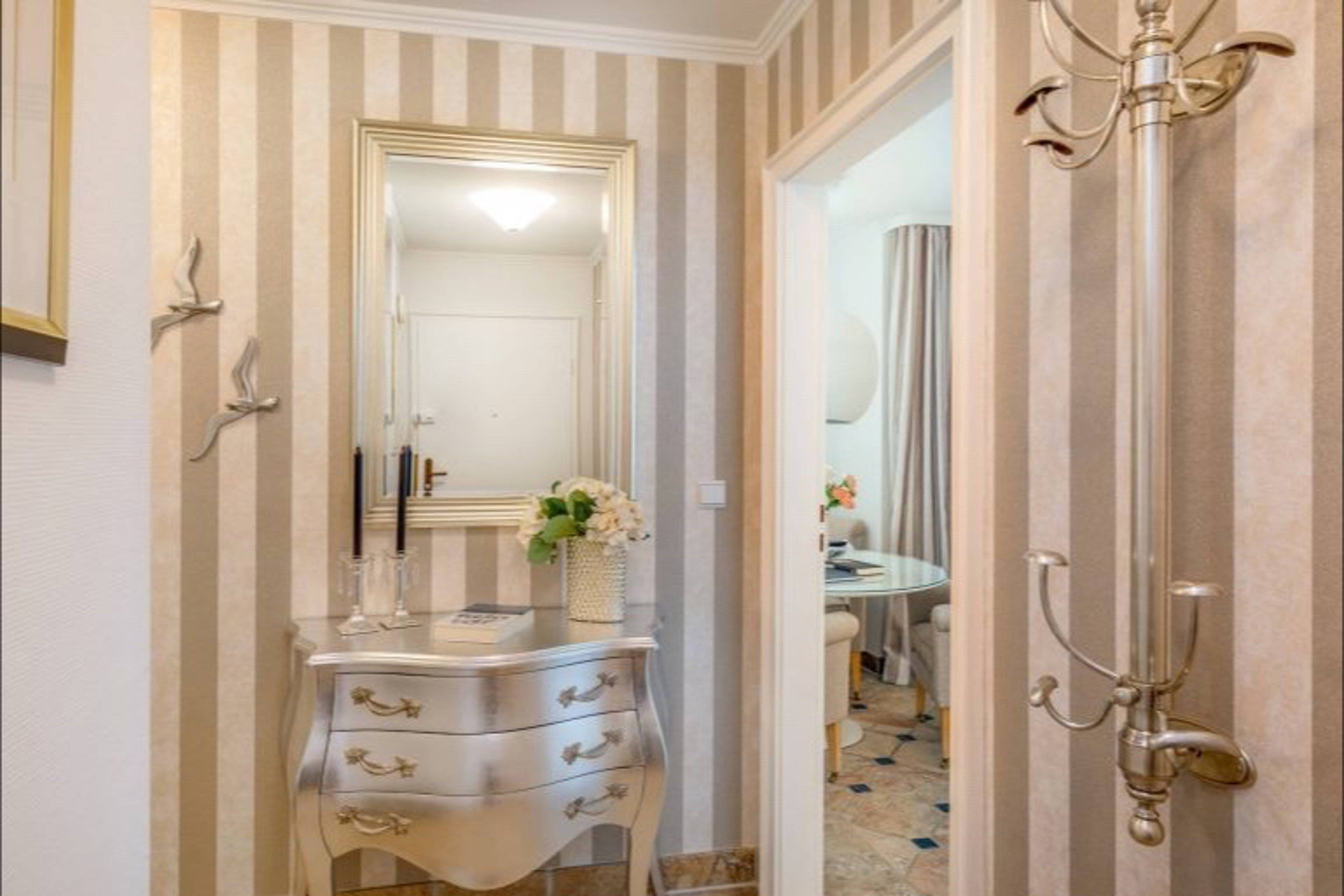 Ein Schlafzimmer mit Doppelbett, Flachbildschirm und Zugang zum Balkon, sowie ein zweites Schlafzimmer mit Doppelbett bietet bis zu vier Personen einen erholsamen Schlaf. Das Badezimmer ist mit edlen Marmorfliesen versehen und verfügt über eine Dusche. In der Wohnung steht Ihnen darüber hinaus eine Infrarotsauna für einen für eine sanfte Entspannung zur Verfügung.