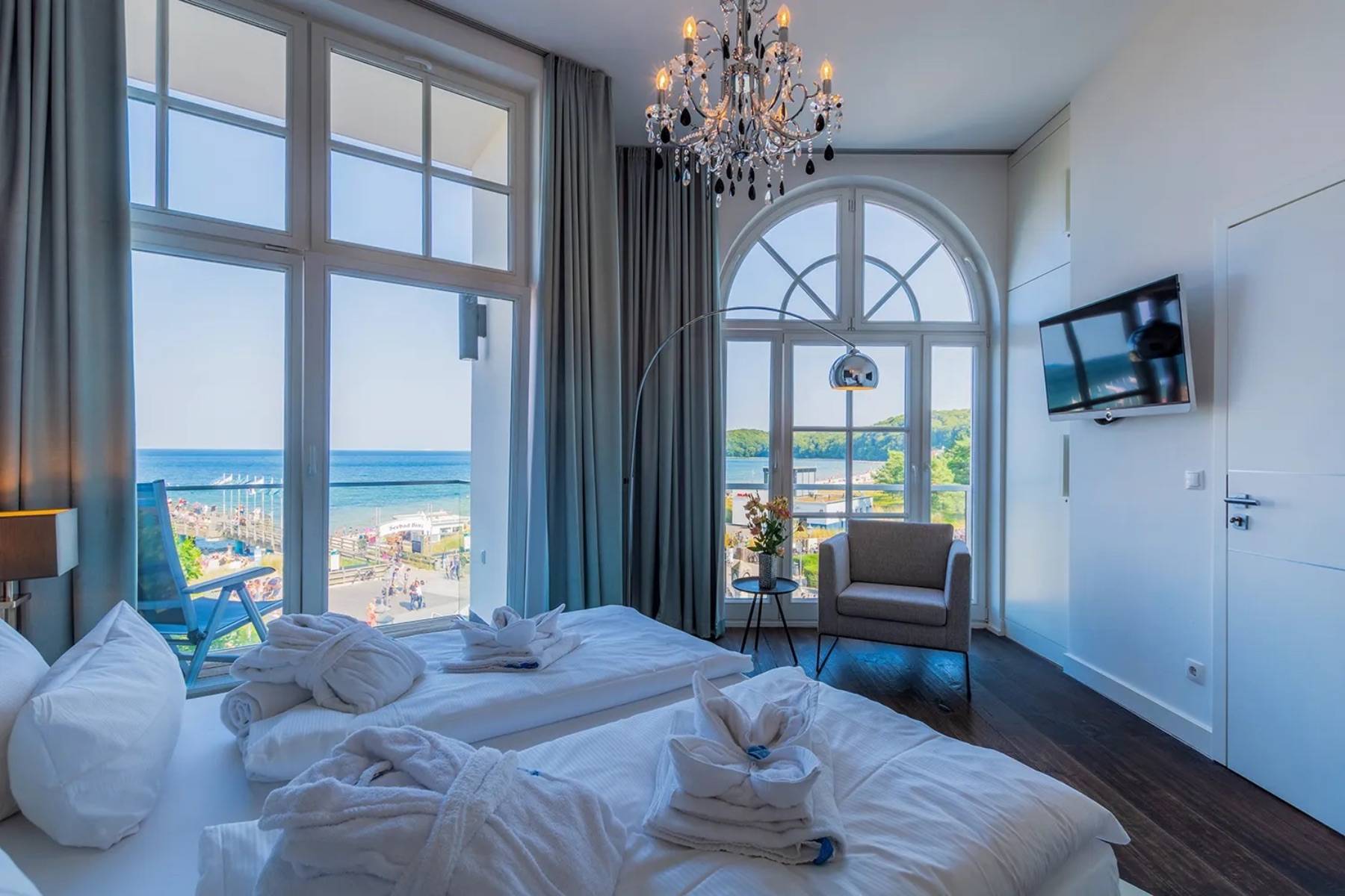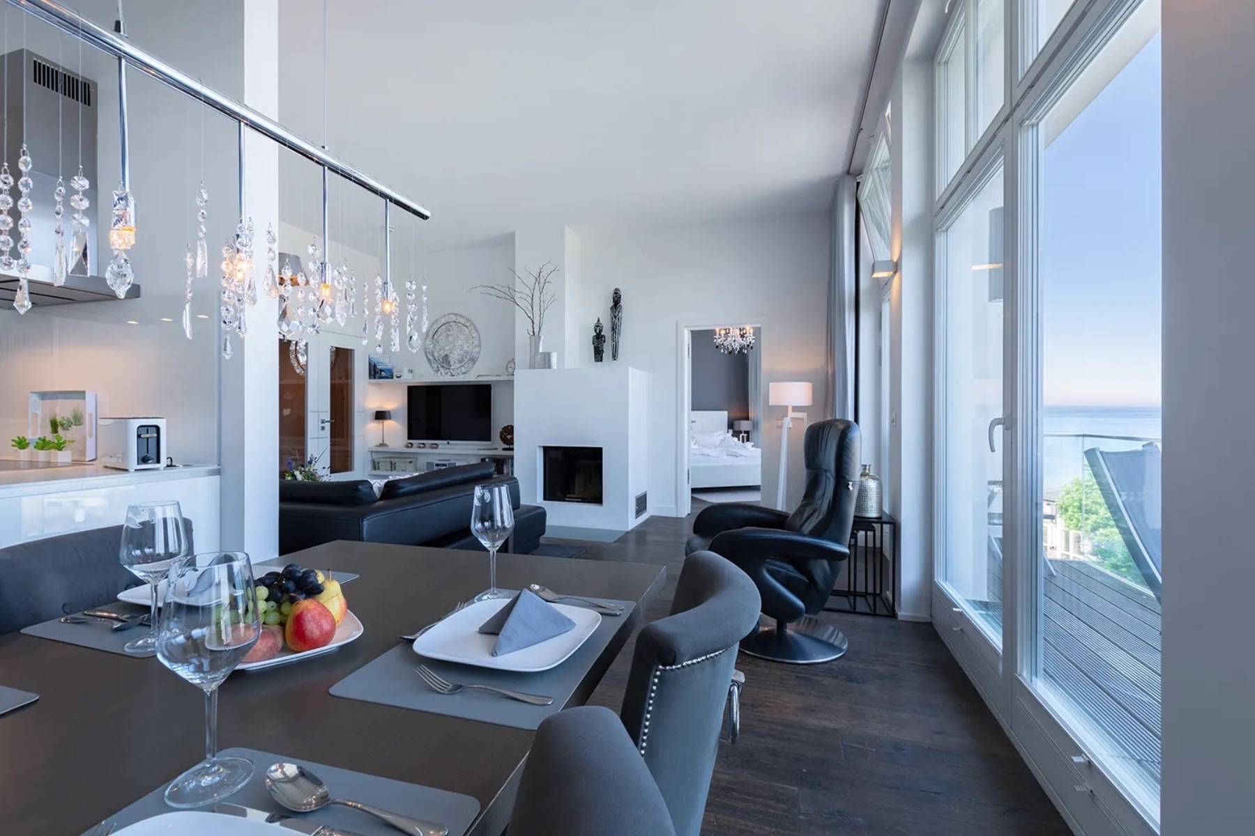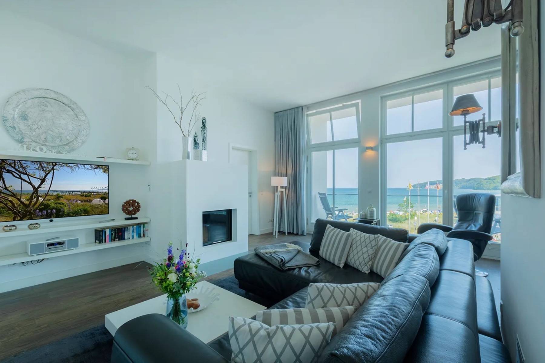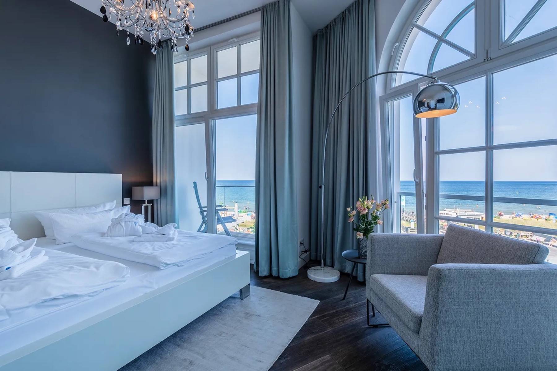 Diese außergewöhnliche Ferienwohnung Ocean One in Binz befindet sich in allerbester Lage, direkt am feinsandigen Badestrand und an der Strandpromenade.