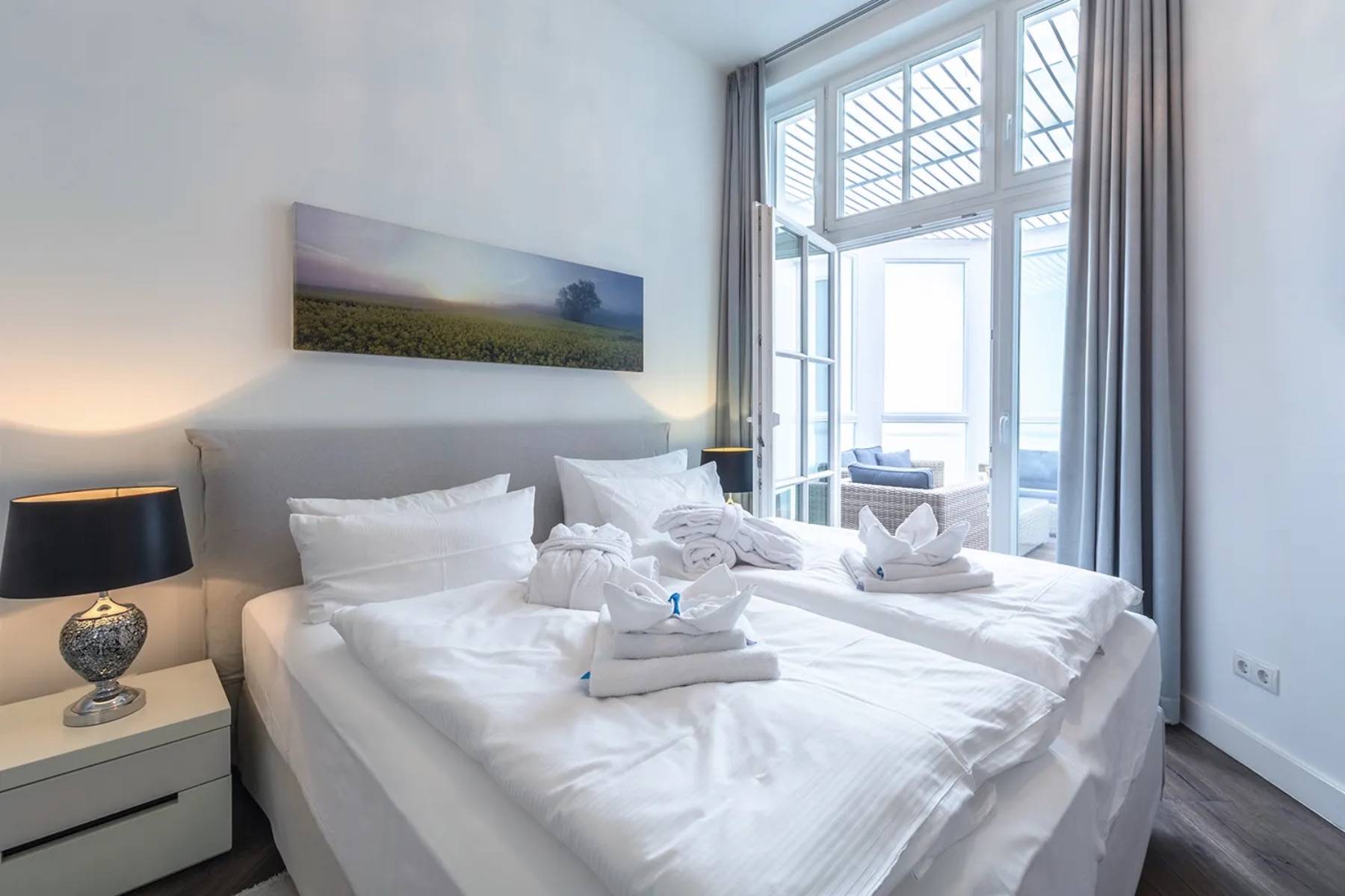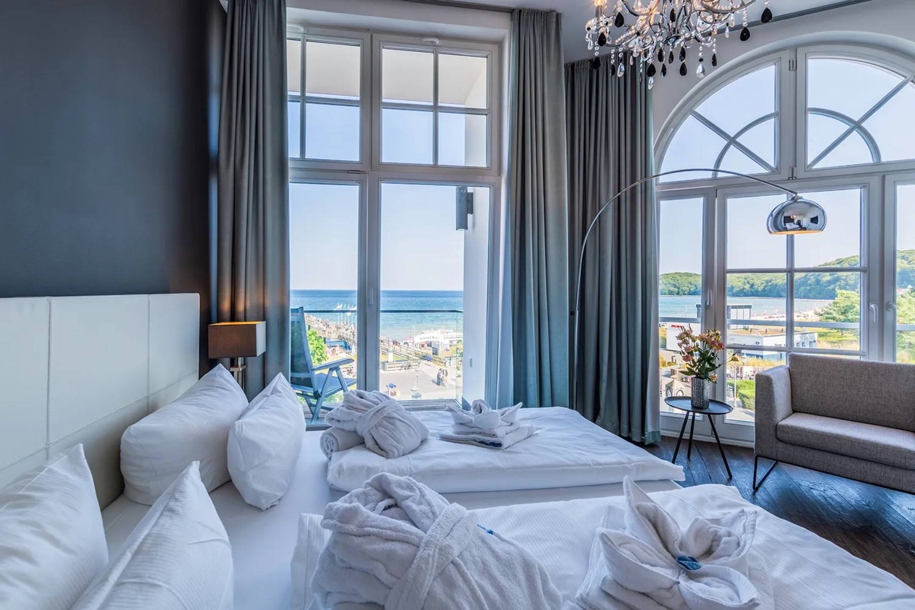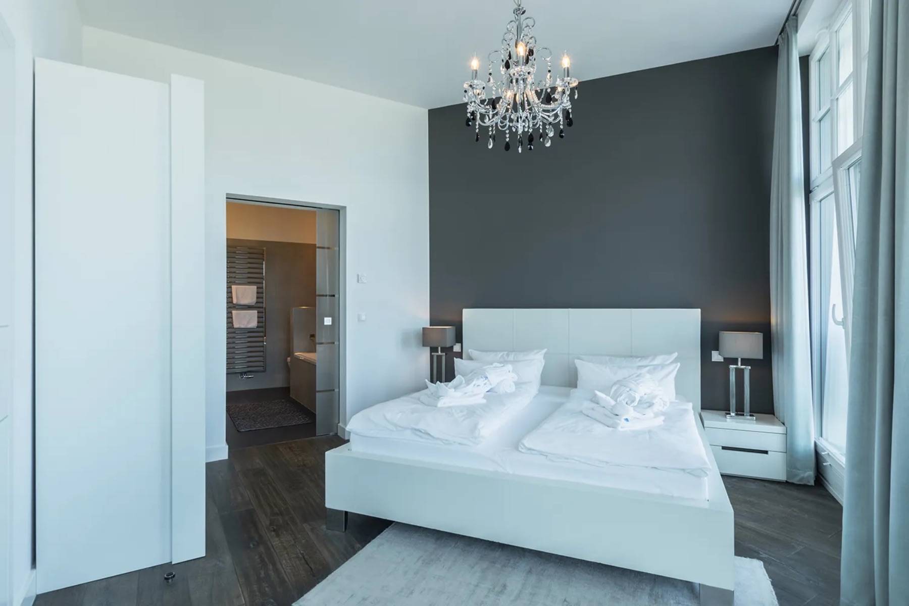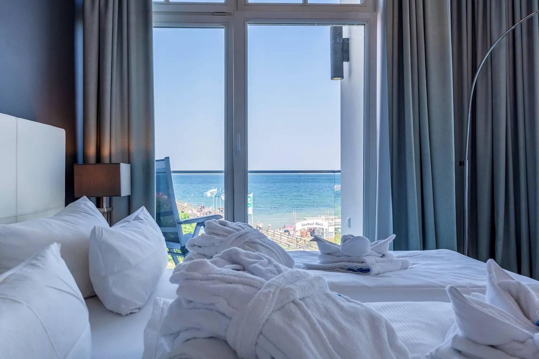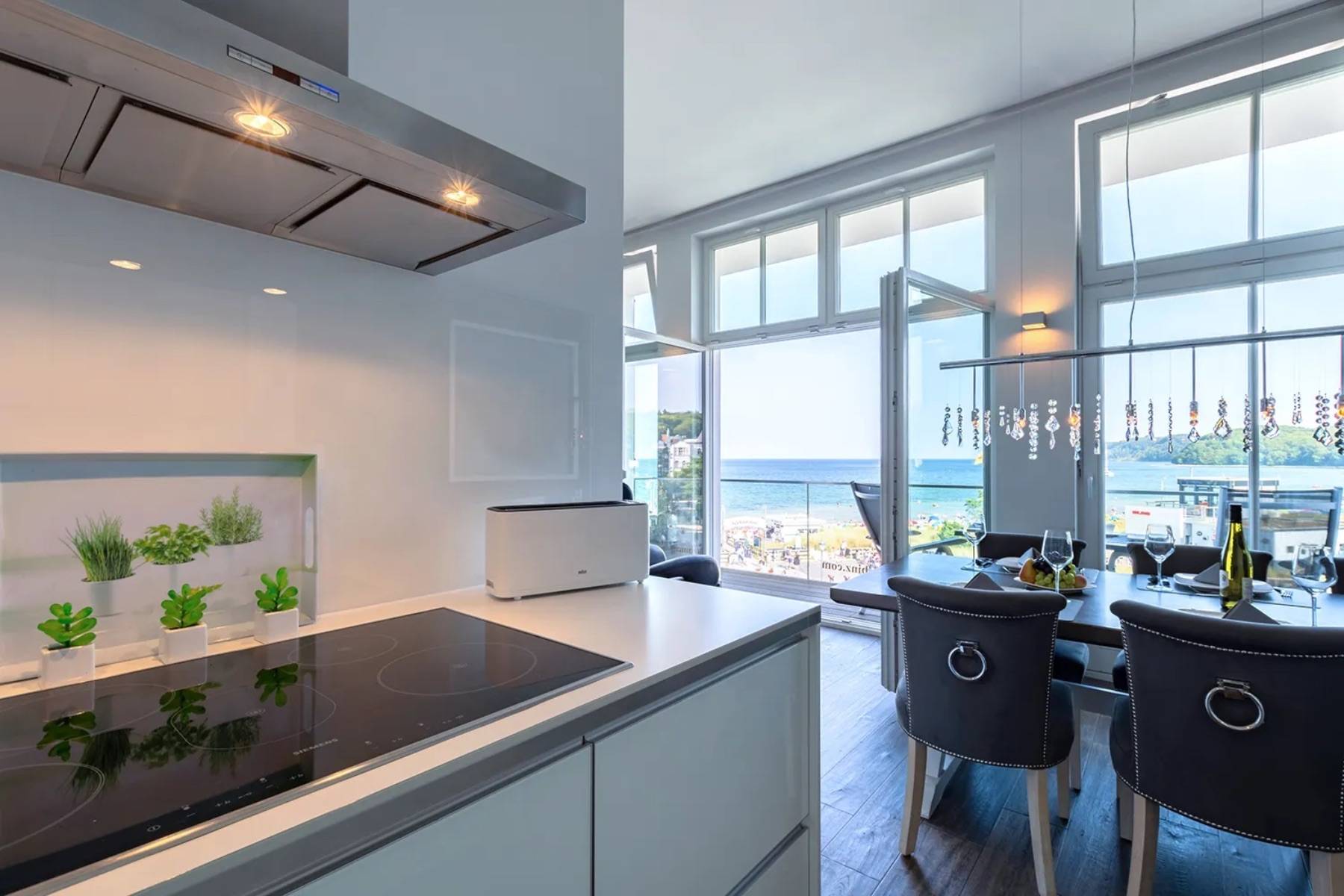 Diese außergewöhnliche Ferienwohnung Ocean One in Binz befindet sich in allerbester Lage, direkt am feinsandigen Badestrand und an der Strandpromenade.