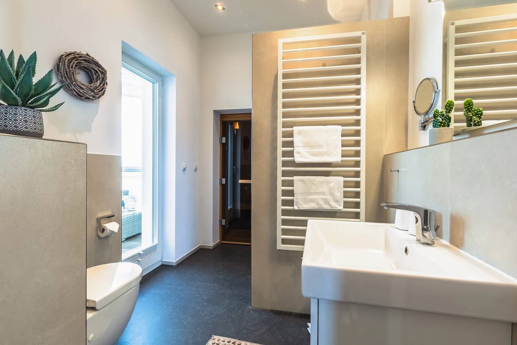 Dusche Fußbodenheizung Haartrockner Handtuchheizkörper Kosmetikspiegel Sauna Spiegel Waschbecken WC