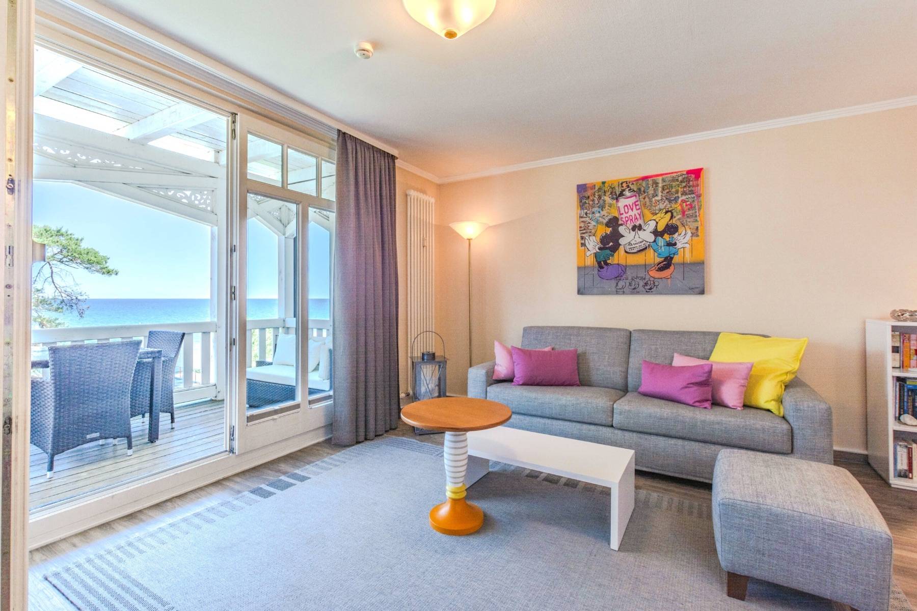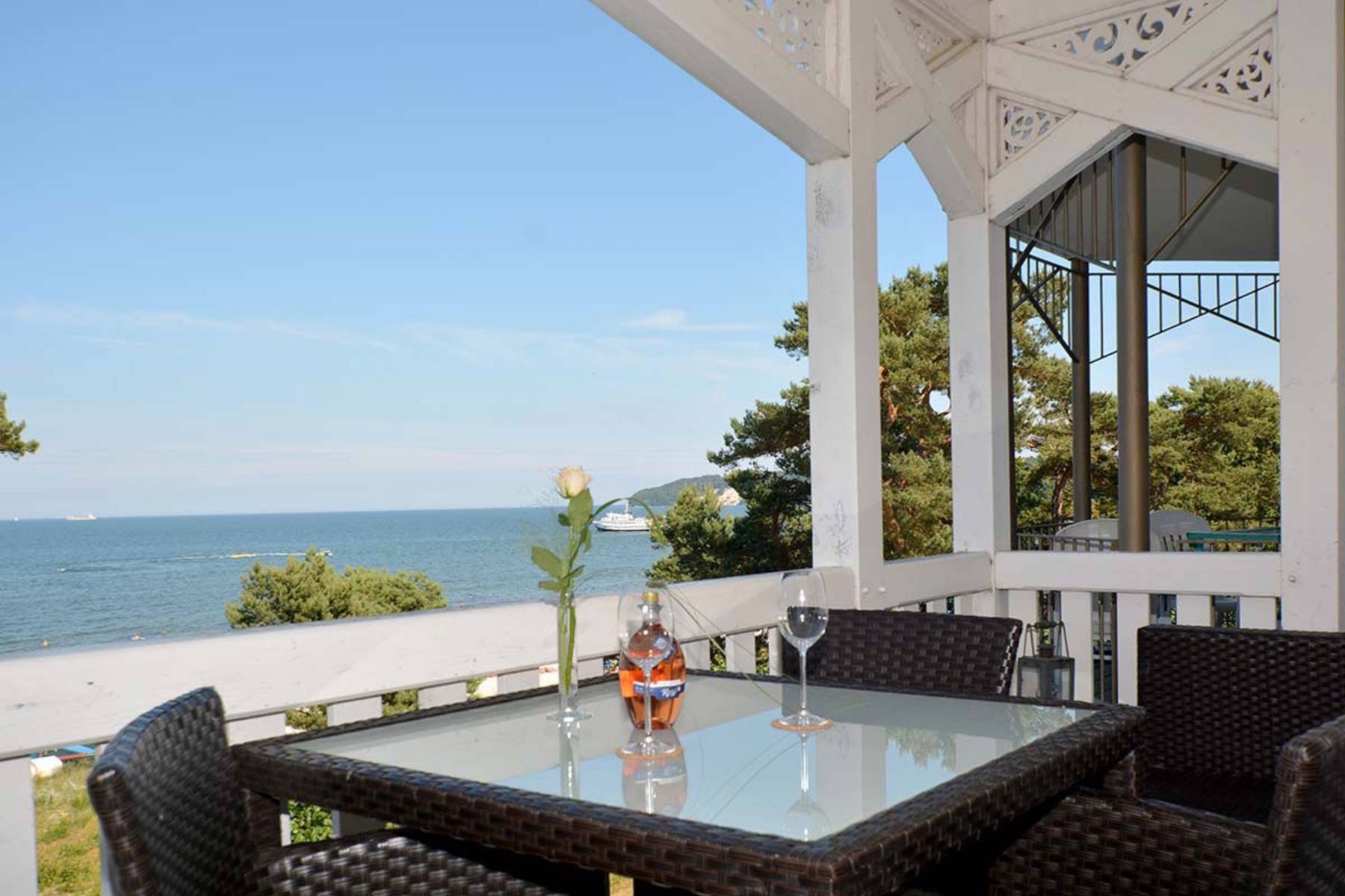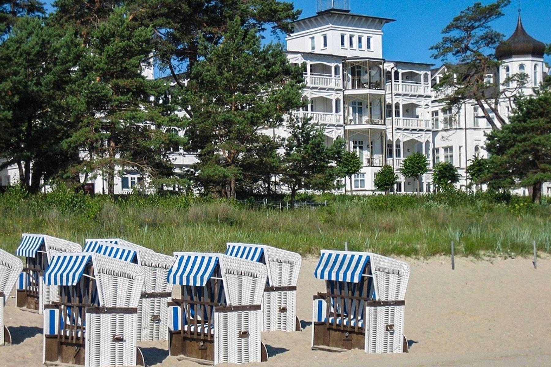 Die wunderschöne Villa Seestern wurde 1997 restauriert und liegt in erster Reihe an der Strandpromenade in Binz. Die Ferienwohnung Sternenstunde befindet sich im 2. Obergeschoss und ist von der Tiefgarage bequem über einen Aufzug erreichbar. Der traumhafte Rundblick auf die Binzer Bucht, die Kreidefelsen, die Seebrücke und das Meer löst zwangsläufig Glücksgefühle aus.
