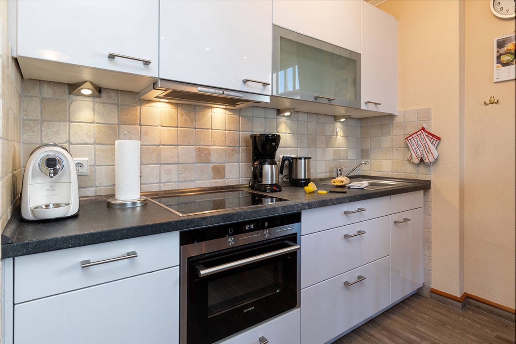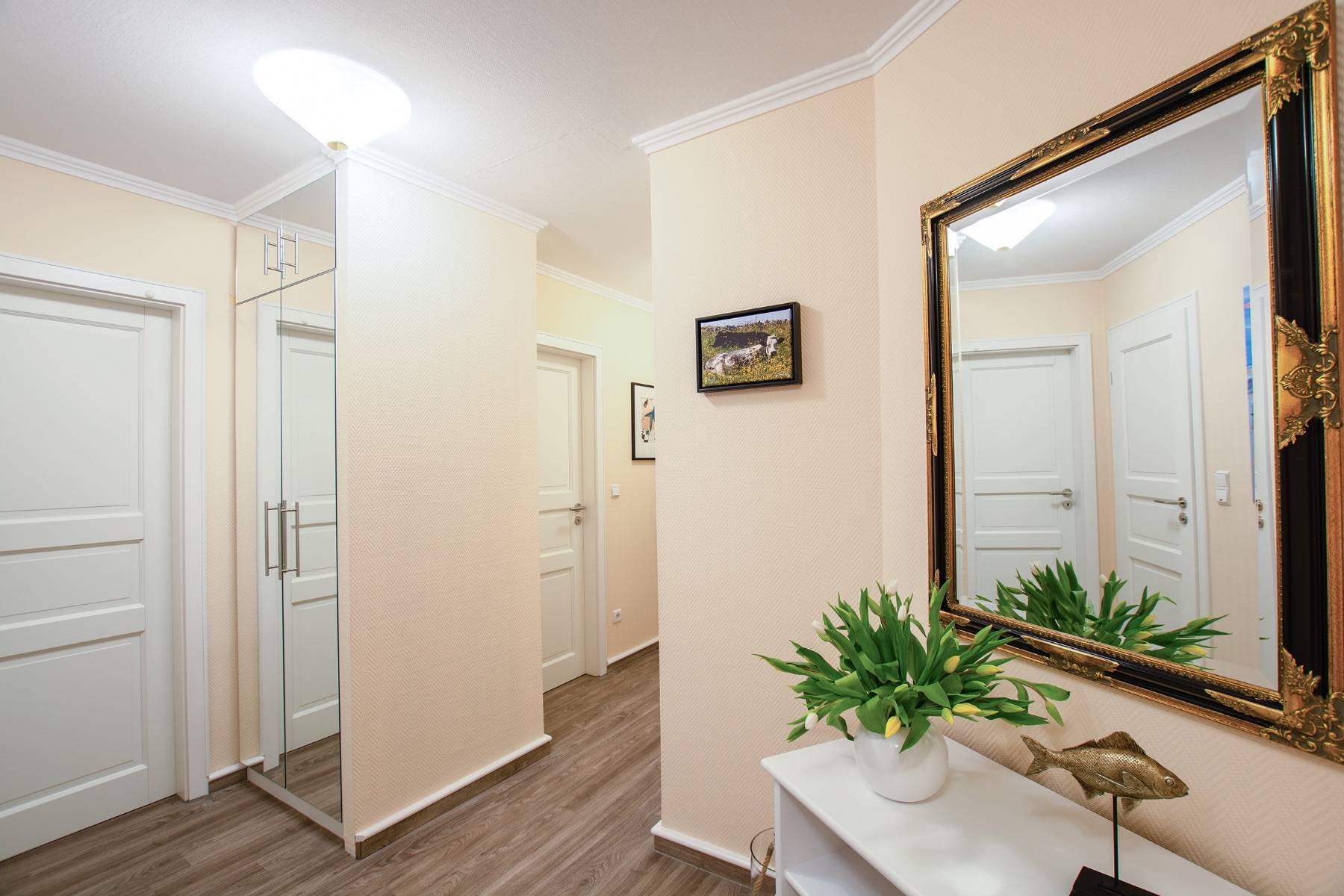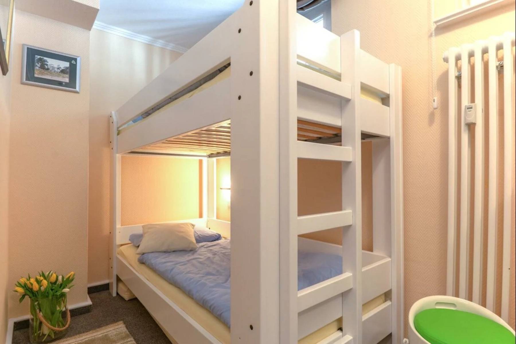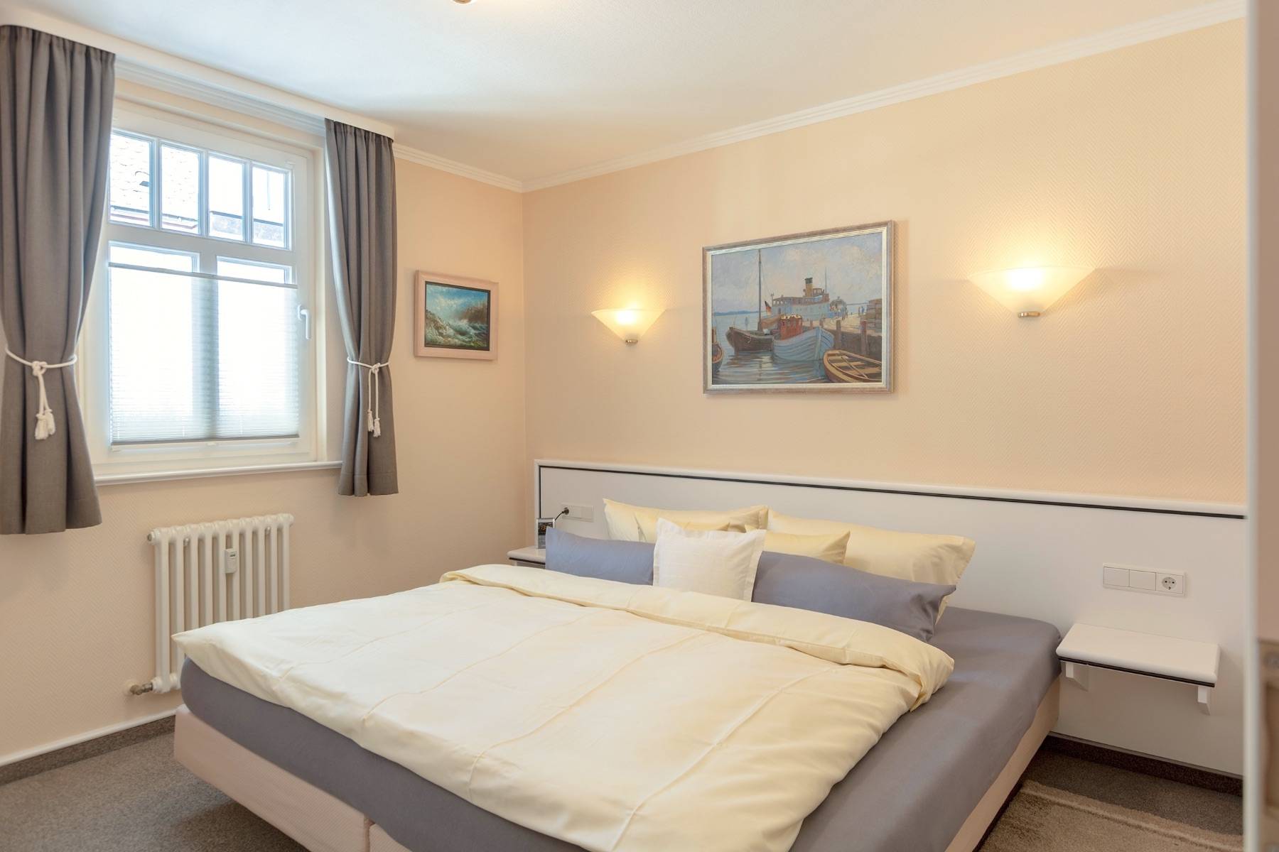 Die Ferienwohnung Sternenstunde in Binz ist mit einem Schlafzimmer und einem Doppelbett, sowie einem Schlafzimmer mit einem Etagenbett perfekt für vier Personen. Bei Bedarf kann auch eine 5. und 6. Person auf dem Schlafsofa im Wohnzimmer gegen einen geringen Mehrpreis übernachten. Das edle Marmorbadezimmer ist mit einer Dusche, WC, einem Handtuchheizkörper, sowie einer Fußbodenheizung ausgestattet.