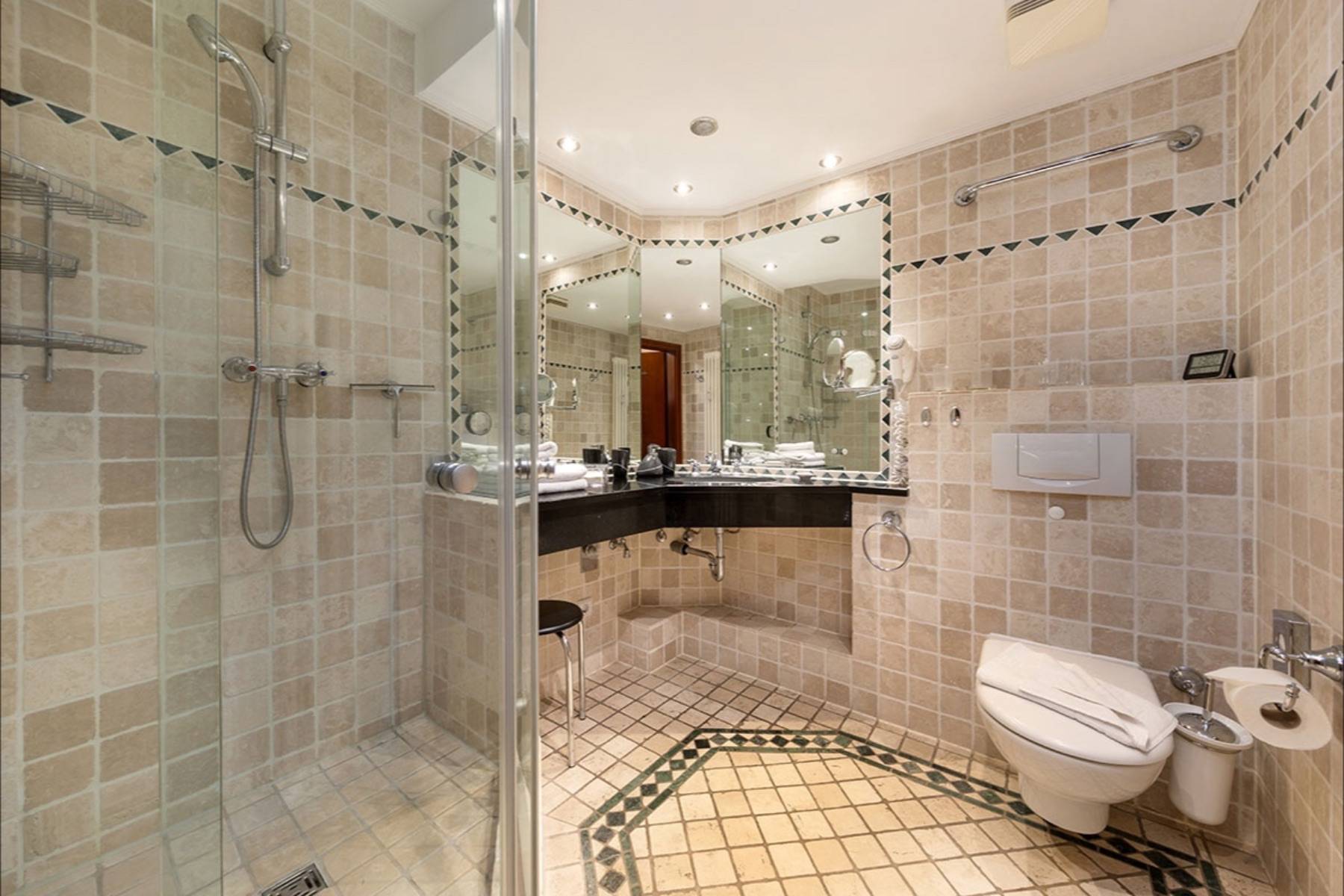 Von der Villa aus sind Cafés, Restaurants, Supermarkt und zahlreiche Shoppingmöglichkeiten (Bekleidungsgeschäften, Juweliere u.a.) fußläufig erreichbar.