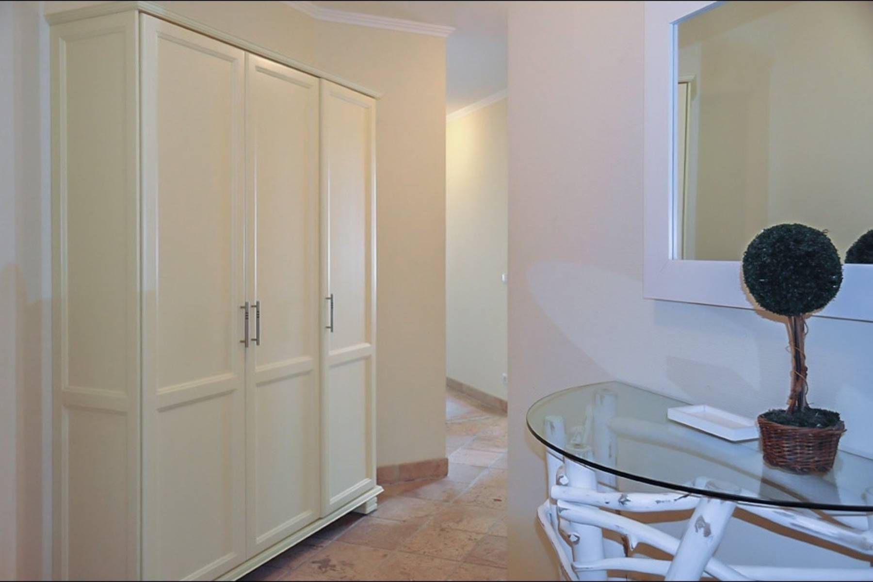 Die Ferienwohnung ist mit einem Schlafzimmer und einem Doppelbett, sowie einem Schlafzimmer mit einem Einzelbett perfekt für drei Personen. Bei Bedarf kann auch eine 4. und 5. Person auf dem Schlafsofa im Wohnzimmer übernachten. Im Masterbedroom befindet sich zudem ein eigener Flachbildschirm. Das edle Marmorbadezimmer ist mit einer Dusche, WC, einem Handtuchheizkörper, sowie einer Fußbodenheizung ausgestattet.