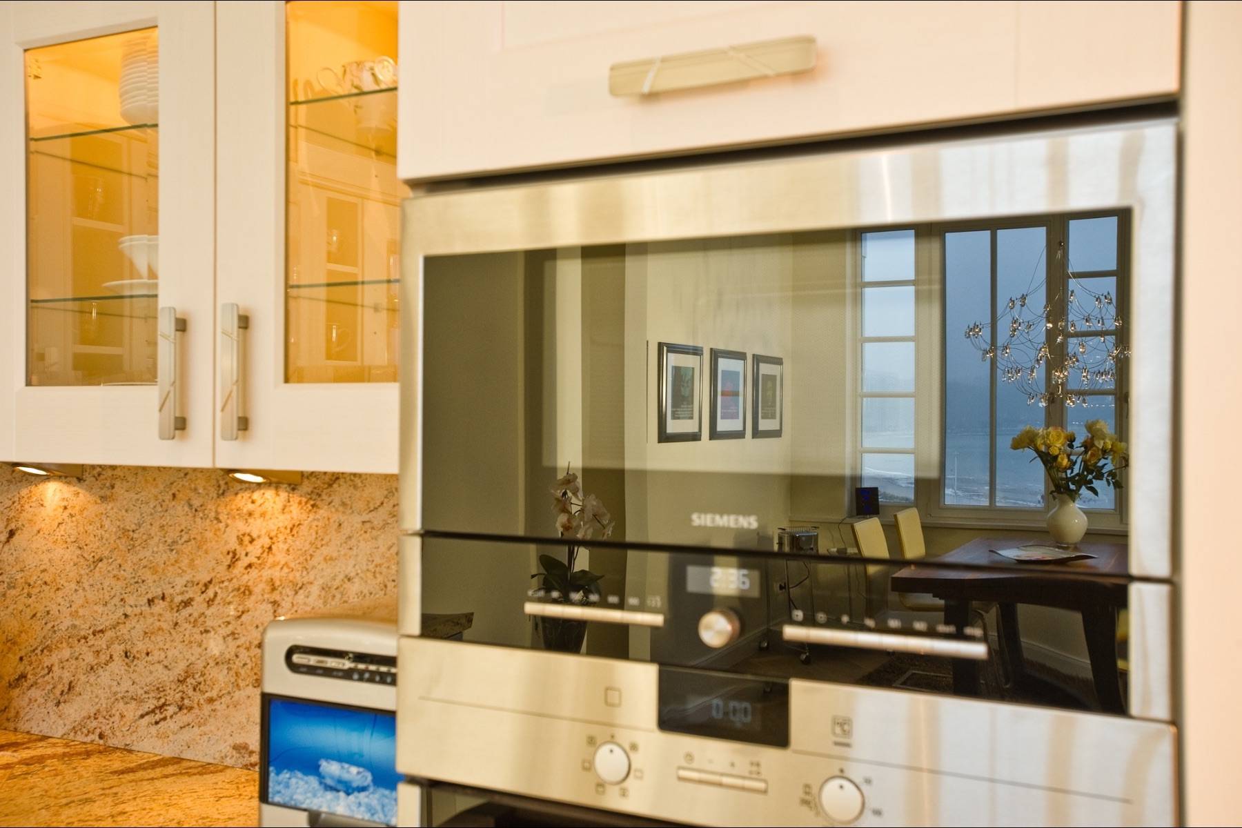 Das gesamte Interieur ist harmonisch aufeinander abgestimmt und zeugt von höchster Qualität. Gemütliche Gespräche in der mit weichem Leder überzogenen Sitzgarnitur und klangvoller Hintergrundmusik vor dem Kamin bleiben in ewiger Erinnerung. Ein heißer Espresso oder ein köstlicher Milchkaffee aus dem Jura- Kaffeevollautomaten machen den Moment zur Perfektion.