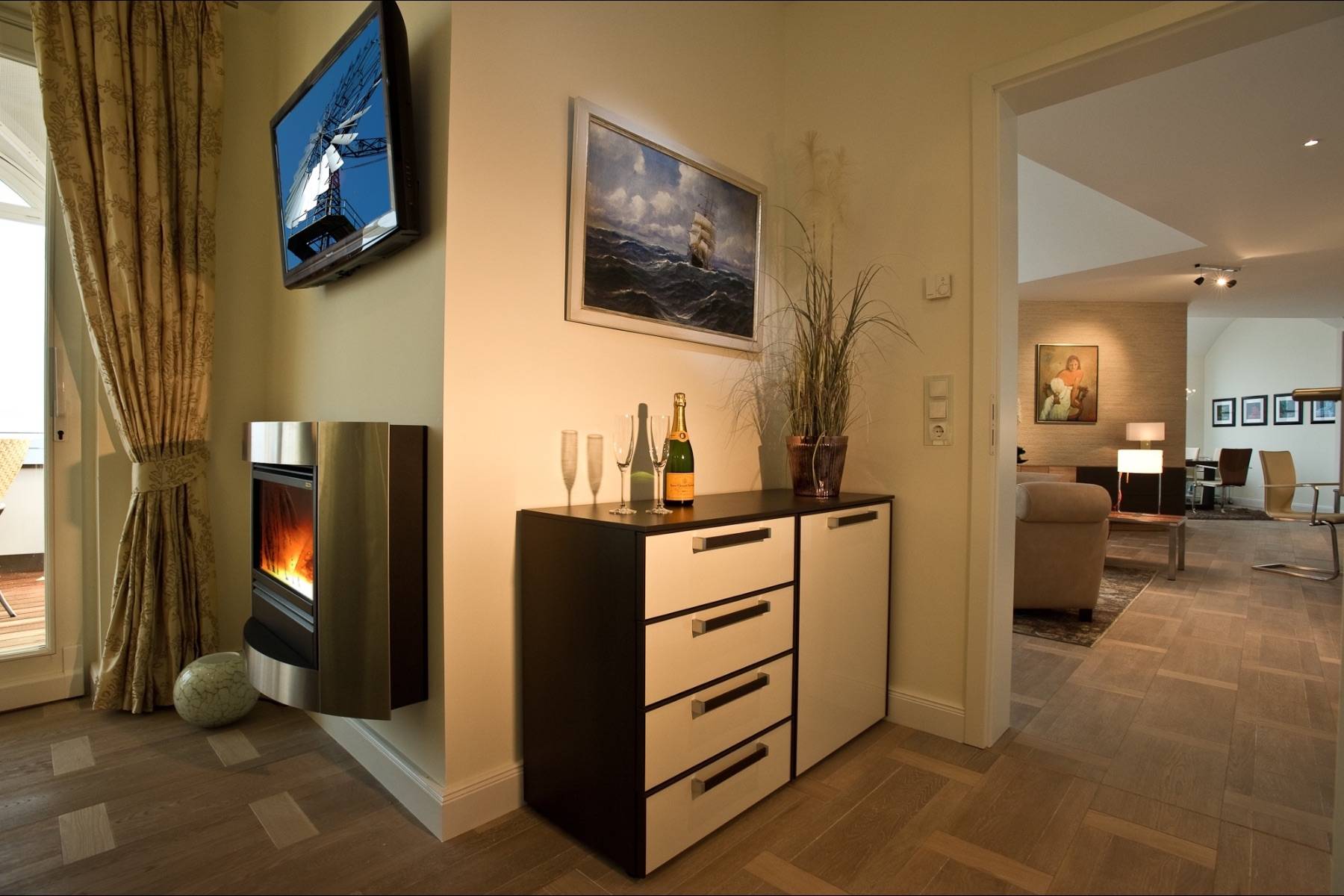 Vom 3. Obergeschoß aus- welches bequem über einen Aufzug erreichbar ist- eröffnet sich Ihnen ein neuer Horizont. Das mit edlem Holzfußboden und einer Fußbodenheizung ausgestattete Penthouse ist mit warmen Farbtönen harmonisch eingerichtet und gewährleistet einen angenehmen Aufenthalt. Hier erwartet Sie auf 130 m² feinster Wohnfläche ein Feriendomizil der Superlative. Bereits beim Betreten wird Ihr Blick automatisch durch die Doppeltüren und die große Fensterfront auf die unendlichen Weiten des Meeres geführt, welches Ihnen zu Füßen liegt. Ein traumhafter Urlaub hat soeben begonnen.