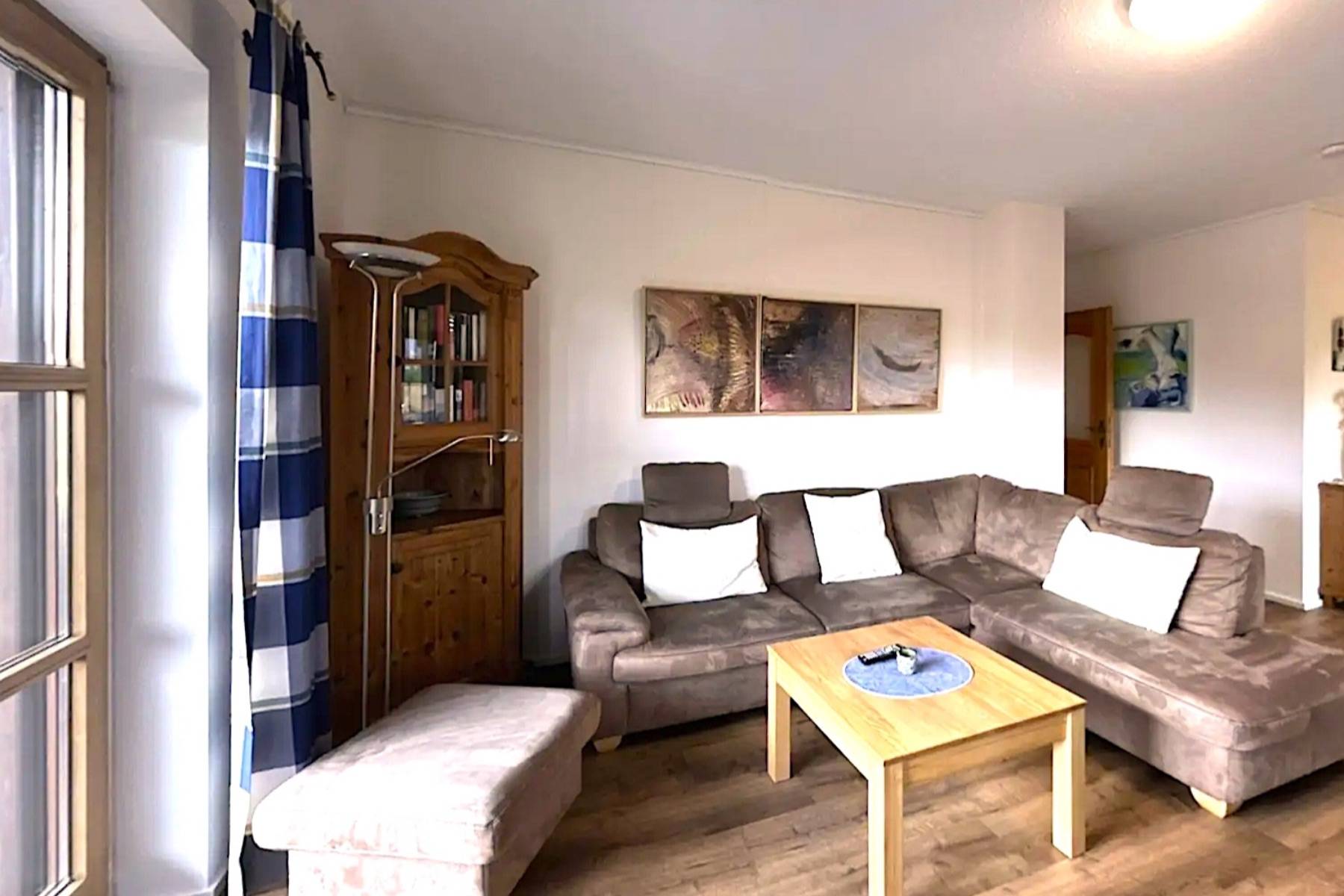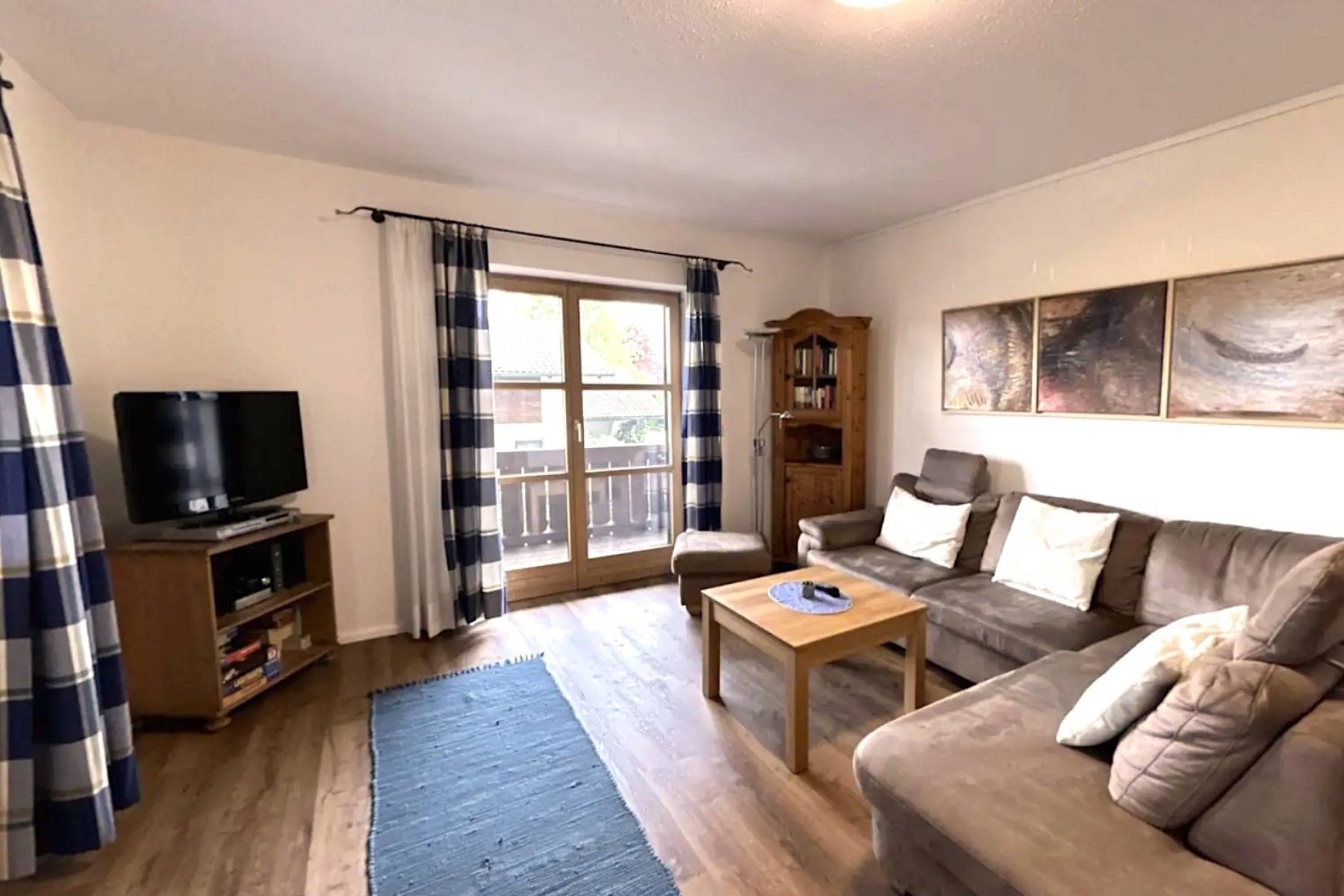 Balkonzugang Ecksofa Esstisch Fernsehgerät Heizung Rauchmelder Sitzbank Stühle TV- Sat/ Kabel Vorhänge
