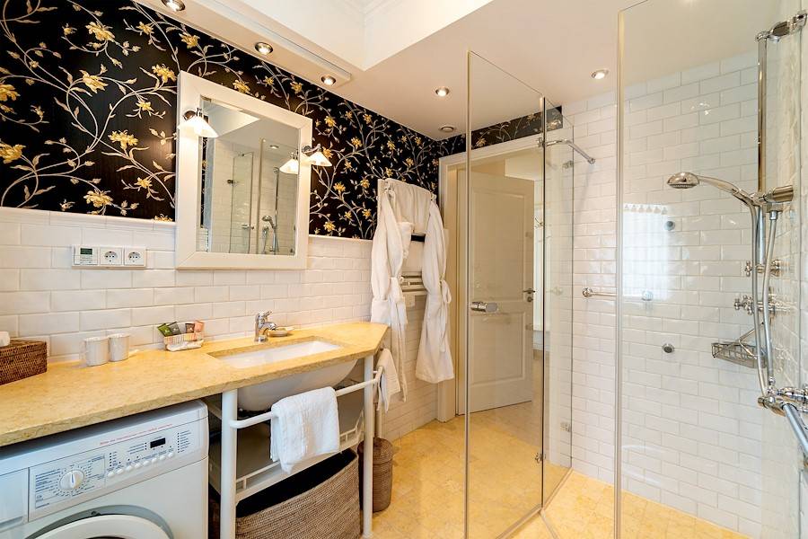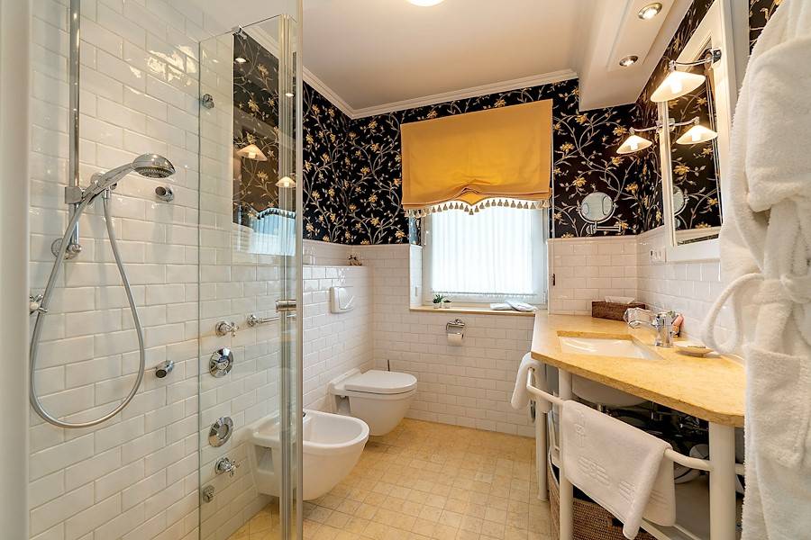 Auch das Badezimmer ist von höchstem Komfort und Luxus eingerichtet. Neben einem Bidet erleichtert Ihnen die ebenerdige Dusche den Einstieg und die Seitenstrahler sorgen für ein Duscherlebnis erster Klasse. Um Ihnen das lästige Kofferpacken zu erleichtern, finden Sie vor Ort einen Haarfön und Kosmetikspiegel. An unvorhergesehene Momente ist auch gedacht worden. Hierfür stehen Ihnen ein Bügeleisen samt Bügelbrett, Nähzeug, Schuhputzzeug und andere wichtige Kleinigkeiten auf Abruf bereit.