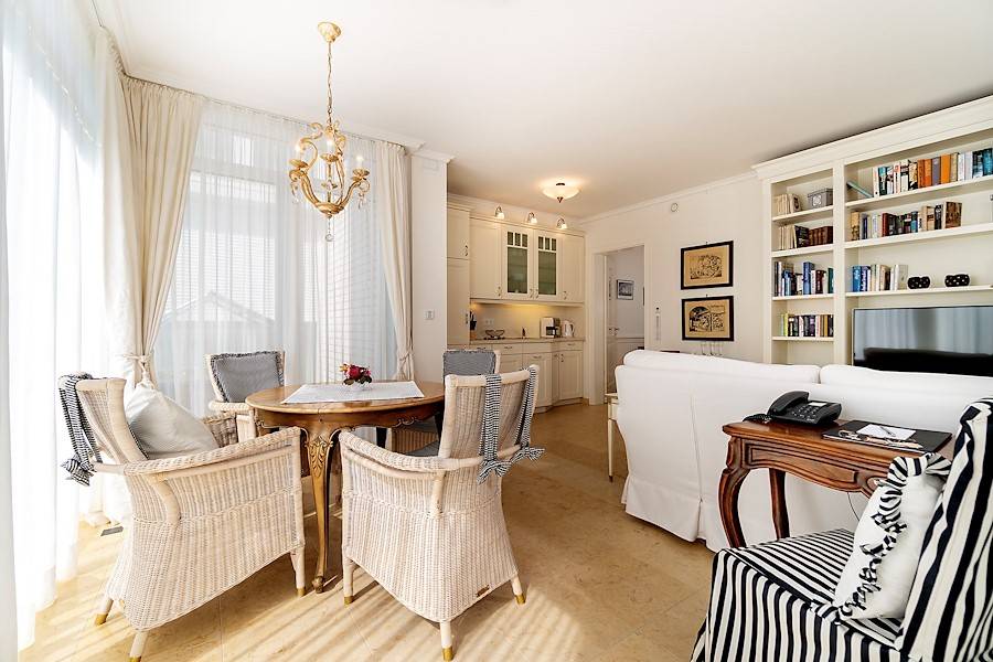 Treten Sie ein in dieses exklusive Appartement in ruhiger Strandlage und fühlen Sie sich wohl auf über 60 m² höchst komfortabler Wohnfläche. Das neue 2- Zimmer Appartement wurde mit edlen Materialien eingerichtet. Der beheizbare Marmorboden sorgt in den kühleren Jahreszeiten für eine angenehme Wärme und die Luftfilter- Lüftung erleichtert Allergikern einen angenehmen Aufenthalt am Meer.