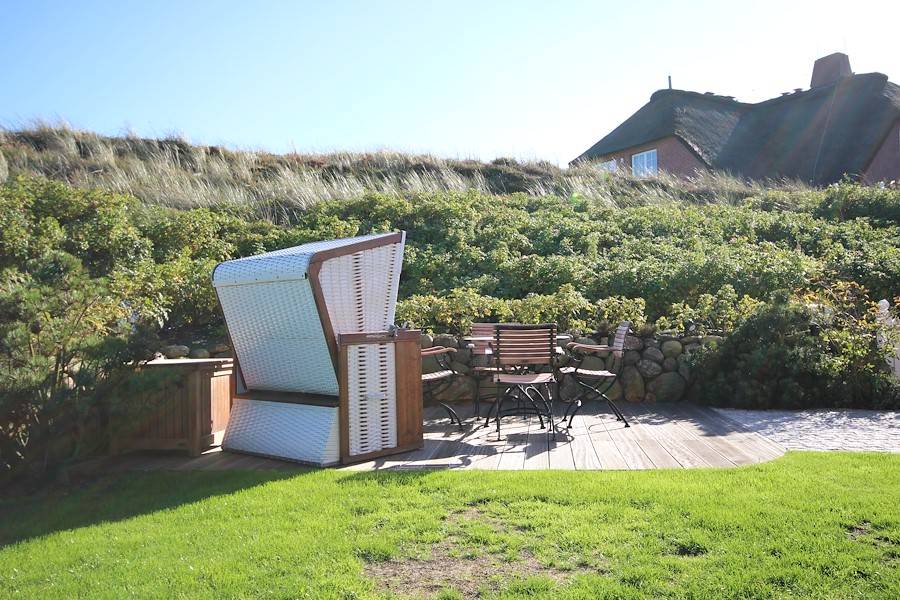 Genießen Sie einmalige Momente auf der Terrasse, auf der ein Strandkorb und exklusive Gartenmöbel von Garpa auf Sie warten. Umgeben von Sylter Wildrosen wird Ihnen das Sylter Flair in ewiger Erinnerung bleiben. Ein idealer Ort für bis zu vier Personen, gleich ob zwei Paare oder für die gesamte Familie. Freuen Sie sich auf einen traumhaften Urlaub in Kampen auf Sylt.