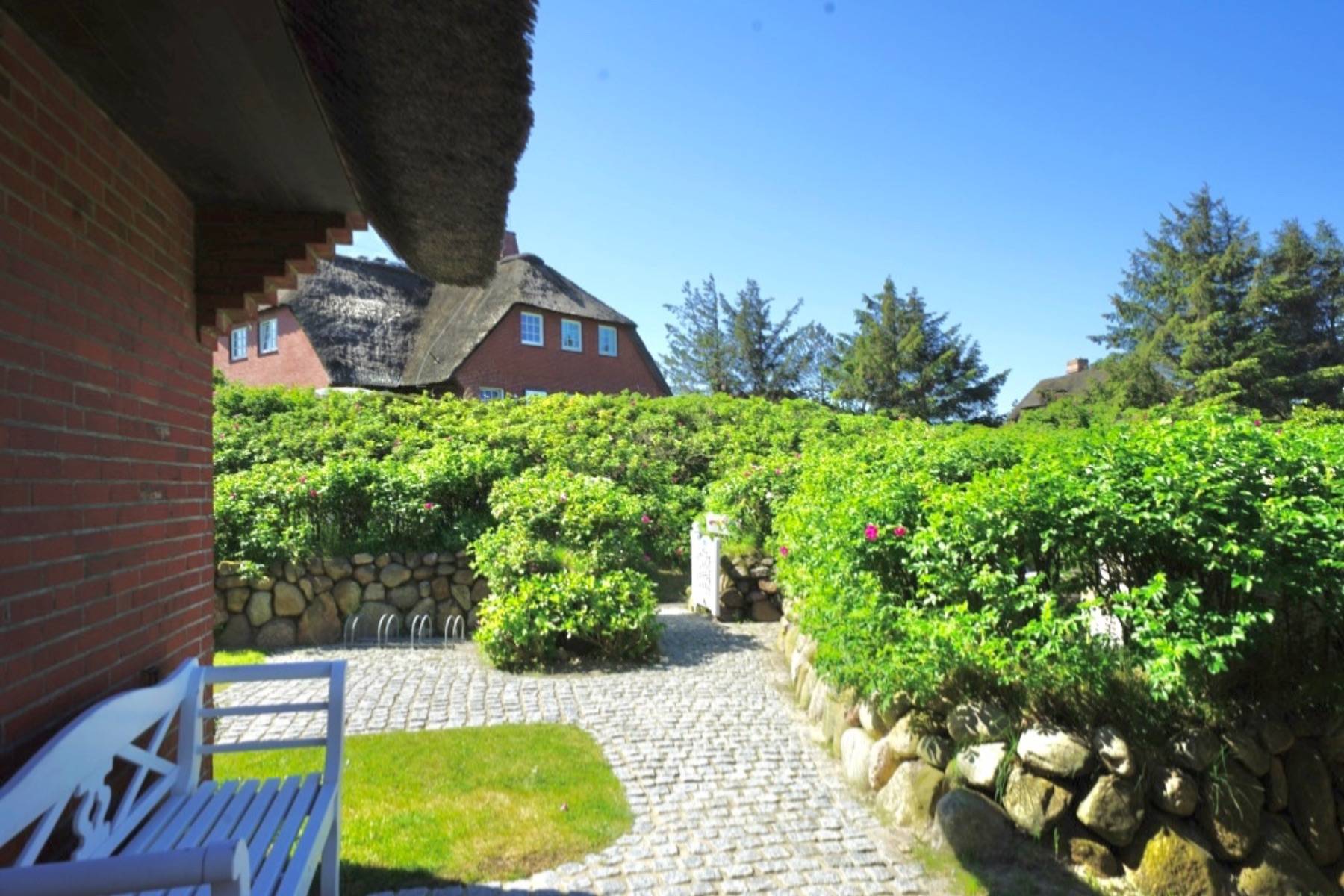 Am Ende eines schmalen Privatweges, der sich durch Syltrosen schlängelt, ist dieses schöne Feriendomizil gelegen. Fußläufig vom eingewachsenen Garten entfernt erreichen Sie das in Sichtweite liegende Wattenmeer, sowie die offene Nordsee mit dem Roten Kliff. Eine Konstellation, die nur selten auf der Insel zu finden ist. Nur ein kurzer Fußweg ist es in den pulsierenden Strönwai, die „Whiskymeile“, und das Zentrum des Dorfes mit seinen legendären Adressen, jungen Hotspots, zahlreichen Antiquitätenhändlern und dem Shopping-Angebot auf Weltstadtniveau. Besuchen Sie exklusive Labels wie Bulgari, Juwelier Wempe, Iris von Armin, Liebeskind, Windsor, Joop und Co. in der Ortsmitte von Kampen und genießen Sie ein exquisites Shopping-Erlebnis.