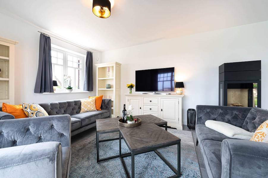 Das Ferienhaus Düne in Lobbe, welches keine Wünsche offen lässt. Kamin, Sauna, Meerblick und viel Platz.
