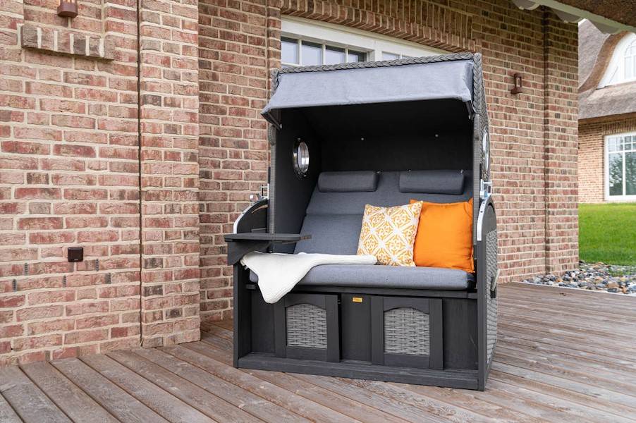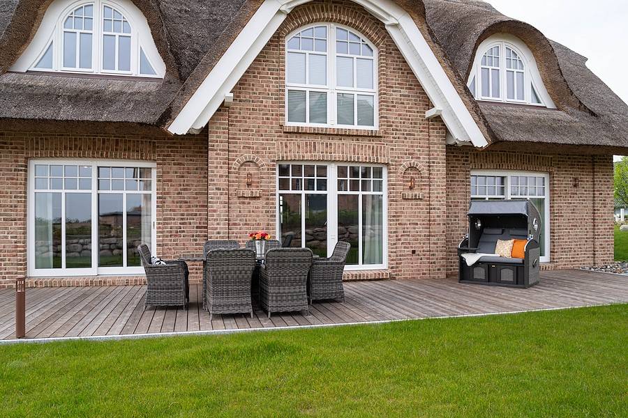 Steht man vor dem Ferienhaus Düne in Lobbe, dürfte der Begriff “Idylle” dies wohl am besten beschreiben. Der Blick auf das neu erbaute und reetdeckte Einzelhaus schweift über die grüne Landschaft in Richtung Ostsee, die direkt vor dem Haus beginnt.