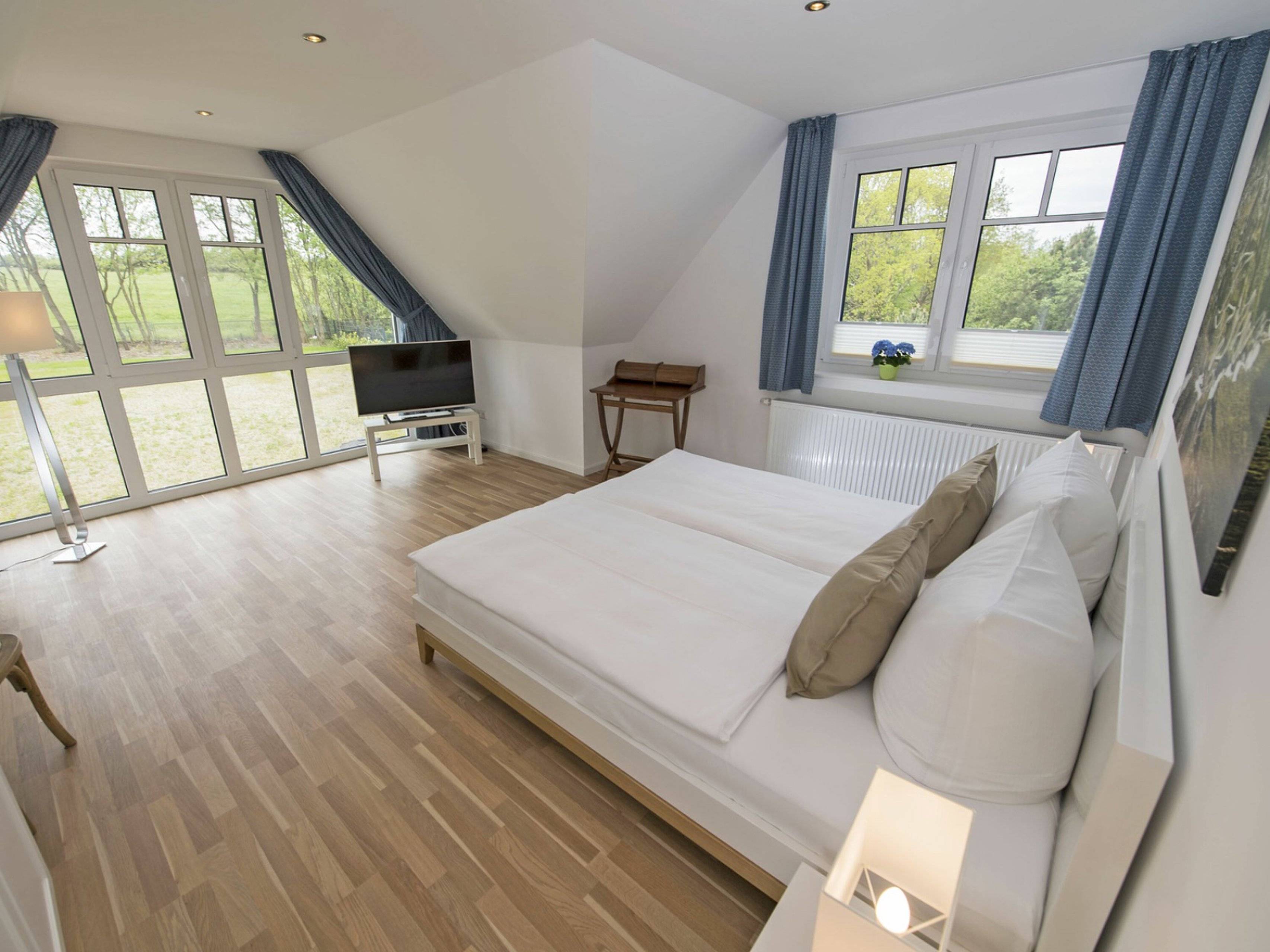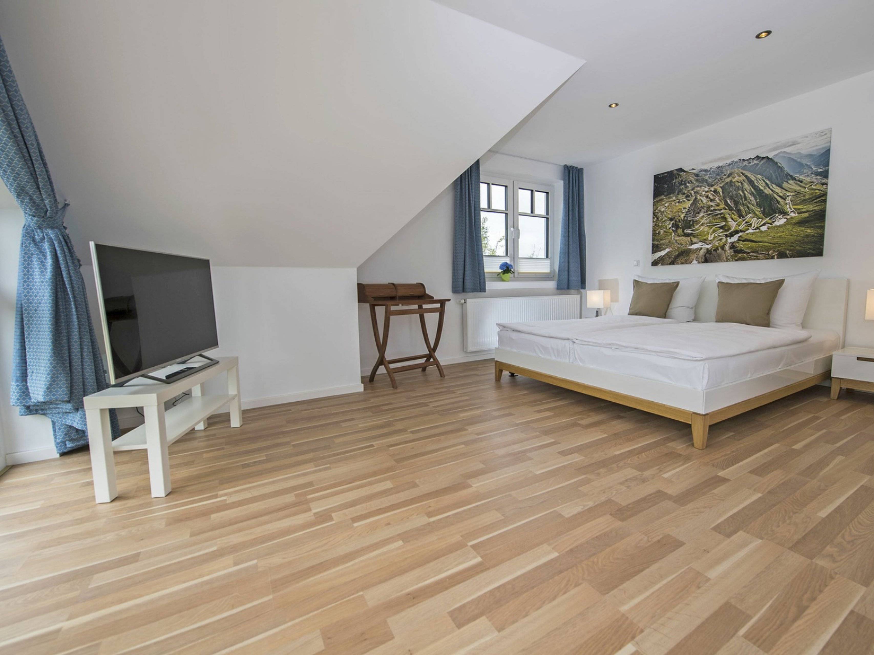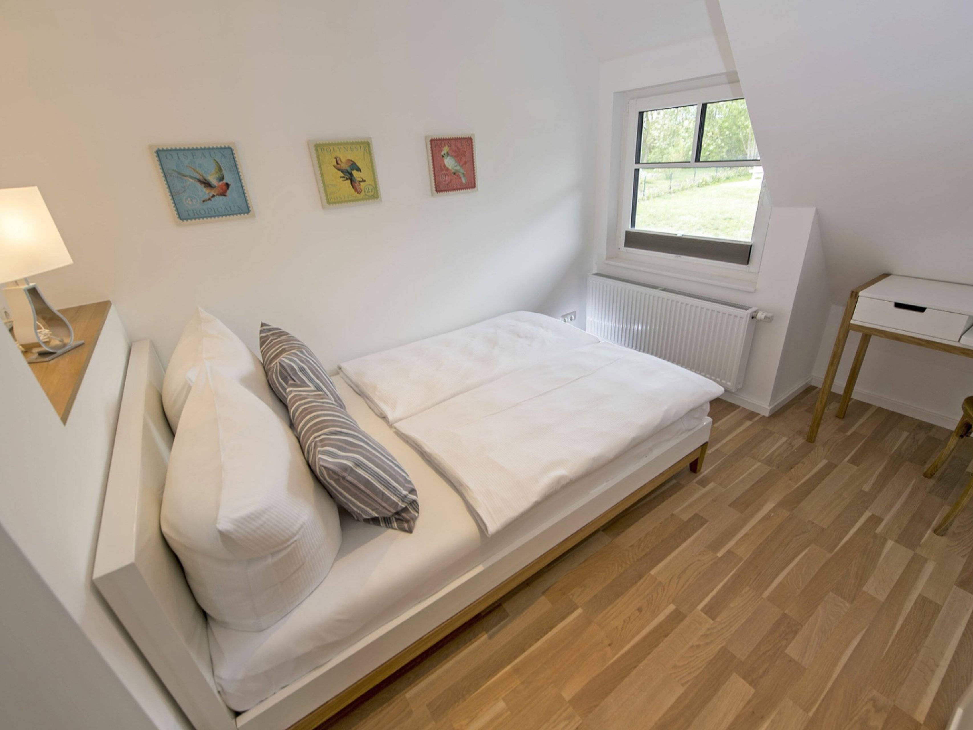Die vierte Schlafgelegenheit mit zwei einzeln stehenden Betten (90x200 cm) befindet sich im ausgebauten Spitzboden des Hauses und ist ideal für Kinder geeignet.