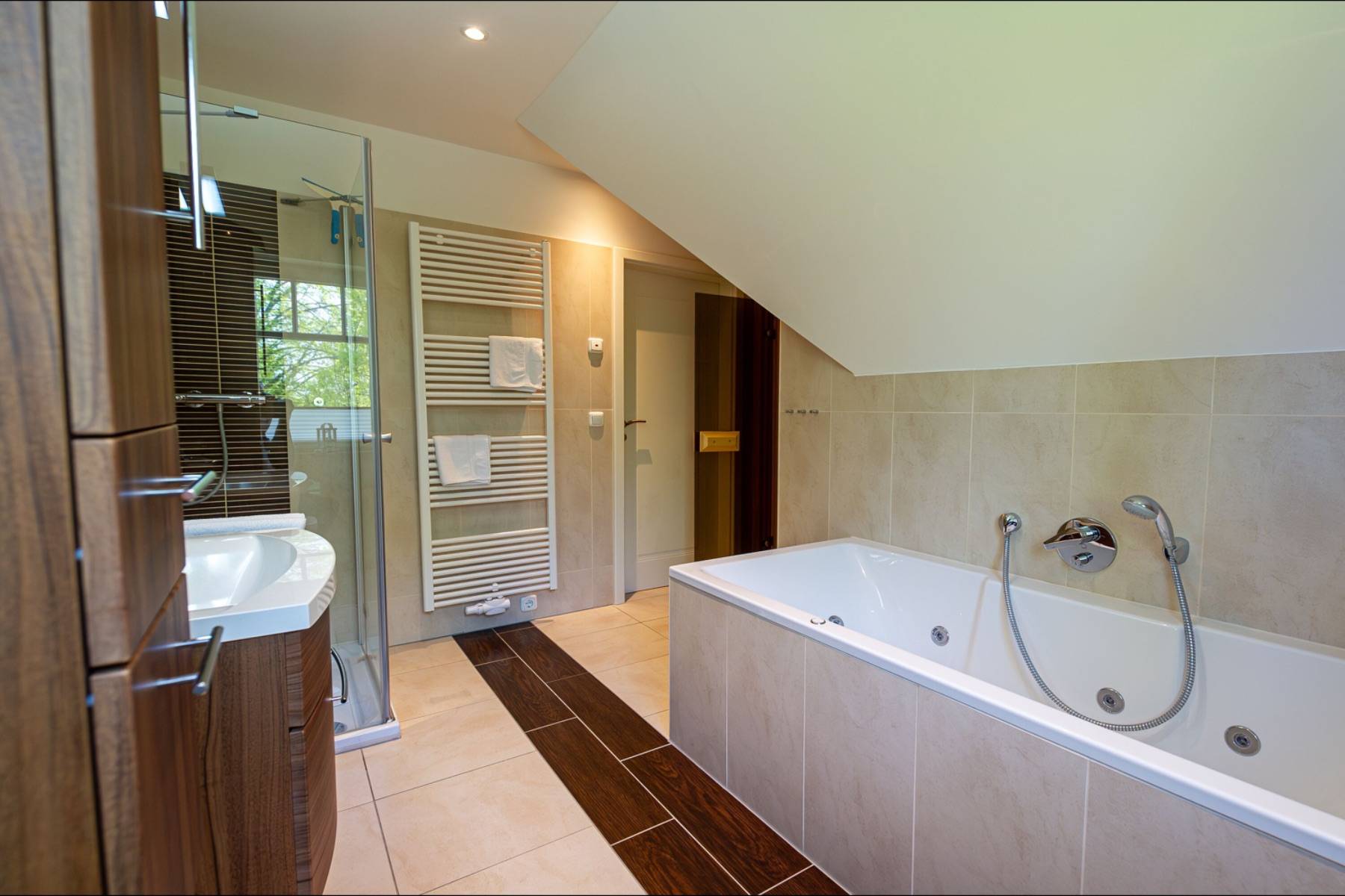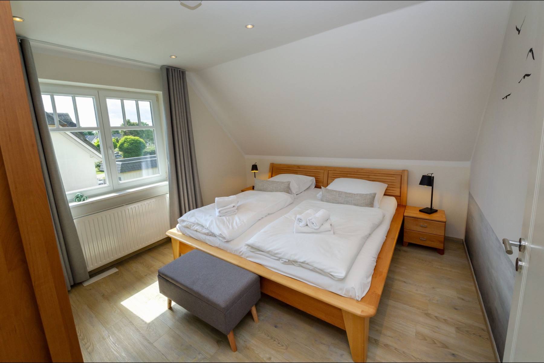 Im Obergeschoss laden drei Schlafzimmer mit bequemen Doppelbetten zum erholsamen Schlafen ein, sowie ein großes Badezimmer mit Waschbecken, Dusche, WC, Badewanne und privater Sauna. Der Ausblick auf das Meer wird Sie begeistern.