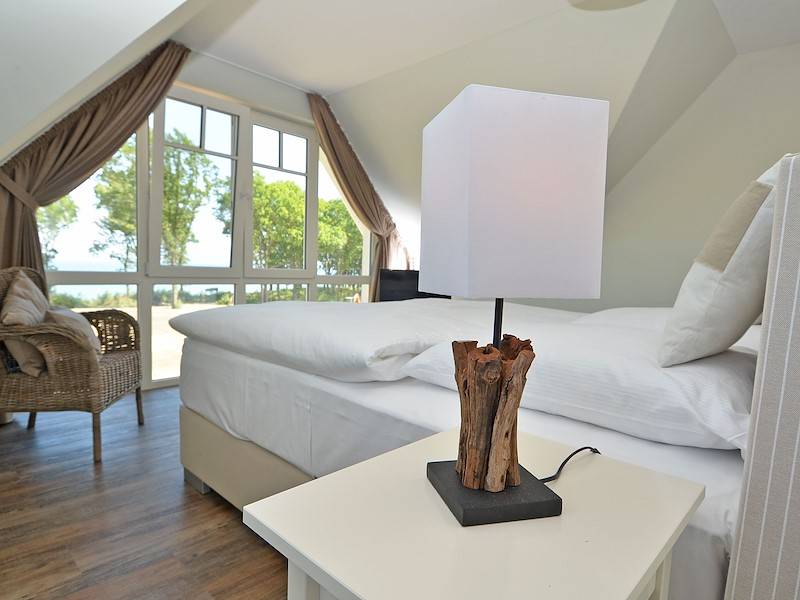 Insgesamt drei Schlafzimmer mit Doppelbetten (2x 160 x 200 cm groß und 1x 180 x 200 cm) befinden sich im Obergeschoß. Zwei davon sind wiederum mit eigenen Flachbildschirmen ausgestattet und ermöglichen auch von hier aus einen wunderschönen Meerblick. Ein Tageslichtbad mit Badewanne, Dusche, Handtuchtrockner und Haarfön machen diese Ebene volständig.