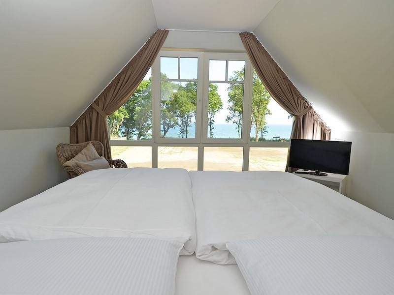 Von der Terrasse und dem ebenerdigen Grundstück aus, kann man in vollen Zügen den Blick über die Ostseewellen genießen, die nur wenige Meter vom Grundstück stranden. Durch eine Gartentür des umzäunten Grundstücks gelangt man direkt an den Badestrand und kann in die Ostsee abtauchen, sich einfach nur sonnen und den Blick auf die Boddenlandschaft genießen, oder am Strand entlang spazieren.
