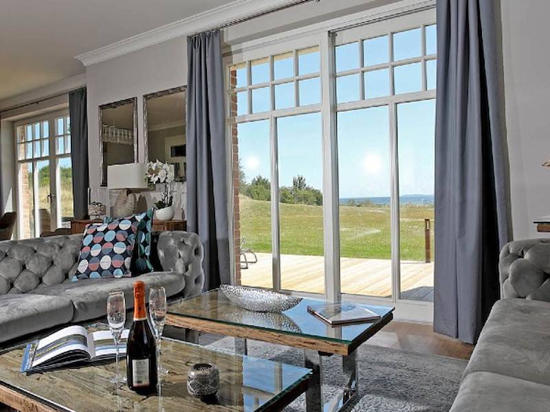 Das Ferienhaus East Sea in Lobbe mit Meerblick, welches keine Wünsche offen lässt. Kamin, Sauna, Meerblick und viel Platz.