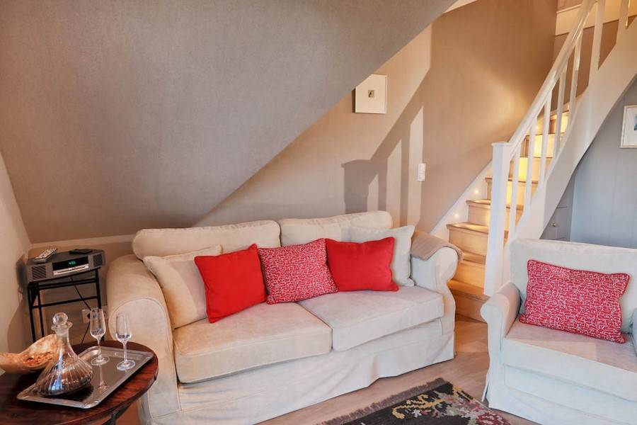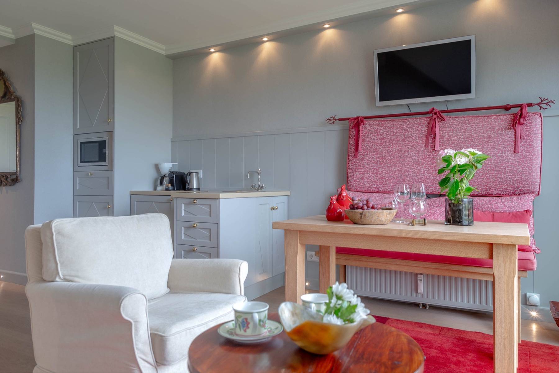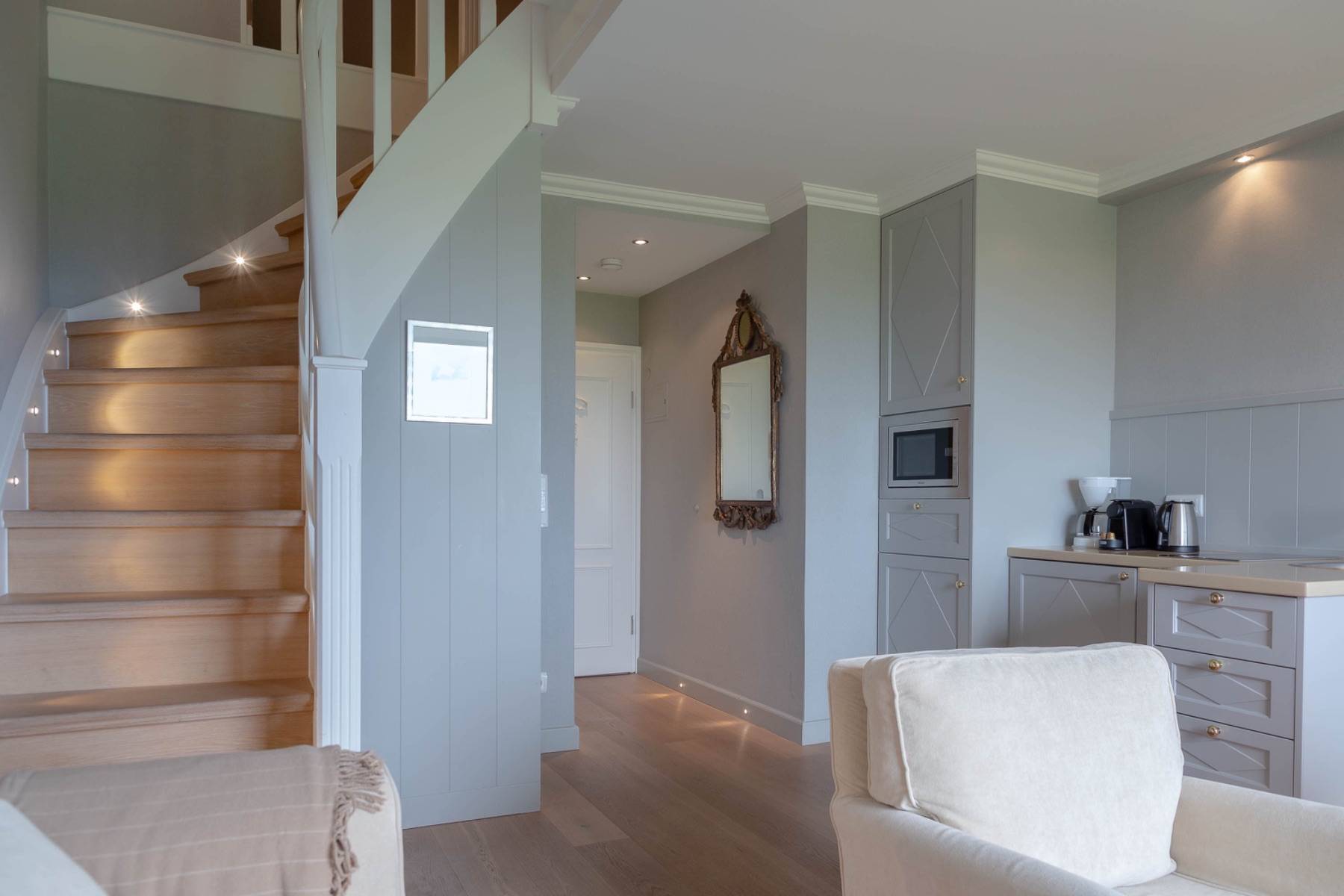 Bereits beim Betreten der Ferienwohnung führt der Blick unweigerlich durch das bodentiefe Fensterelement über die Weiten des Meeres.Für diesen Meerblick und die ruhige Lage am Ende einer versteckten Sackgasse wird man Sie endlos beneiden.