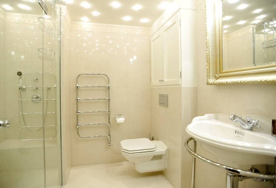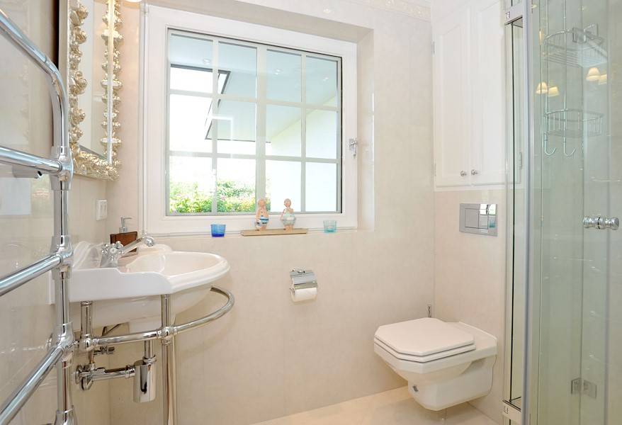 Zwei traumhaft schöne Badezimmer sind mit hellen Fliesen und maßgefertigten Einbauten versehen. Die ebenerdige Dusche lässt Ihnen die Wahl, zwischen einer Regendusche oder eher einer konventionellen. Der Handtuchheizkörper in Chrom hält währenddessen die Badetücher kuschelig warm, während die zahlreichen, in die Decke eingelassenen Leuchten wie einen Sternenhimmel zum Träumen verleiten.