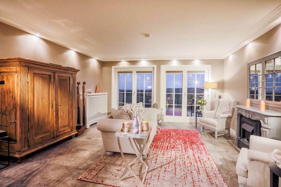 Die extravagante Einrichtung im lichtdurchfluteten Wohnbereich offenbart durch die bodentiefen Fensterelemente Einblicke auf die Terrasse und gewährt einen atemberaubenden Panoramablick über die Heidelandschaft und das Wattenmeer. Wer mag, liest einfach ein spannendes Buch vor dem knisternden und rauchenden Elektrokamin, oder führt ausgiebige Gespräche mit dem Liebsten.