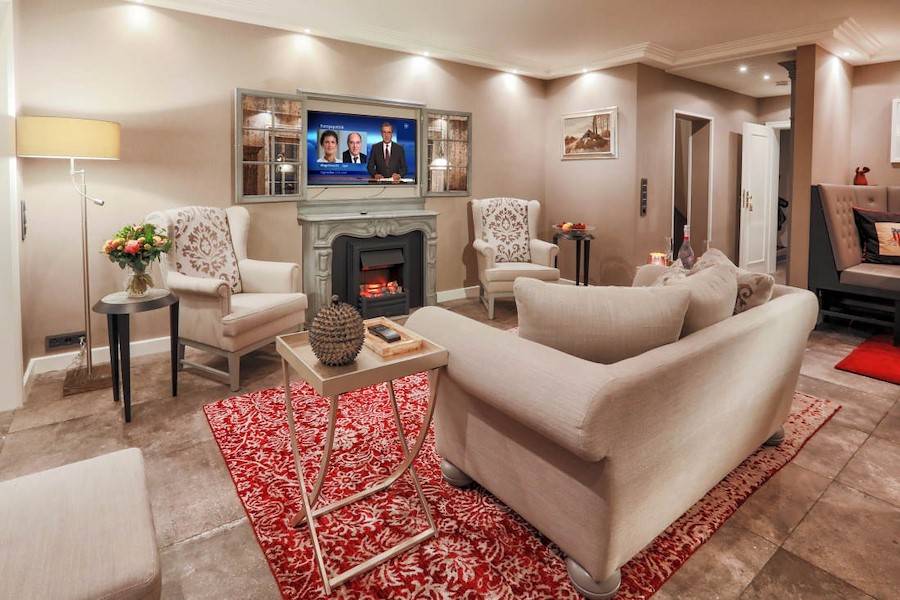Zwei ansprechende und exklusive Schlafzimmer im Untergeschoß mit Luxus- Doppelbetten und je einem Flatscreen sind Garant für einen erholsamen Schlaf. Die beiden extravaganten Badezimmer mit Objekten des weltbekannten Designers Philippe Starck machen selbst aus einem Morgenmuffel ein Lila- Laune- Bär.