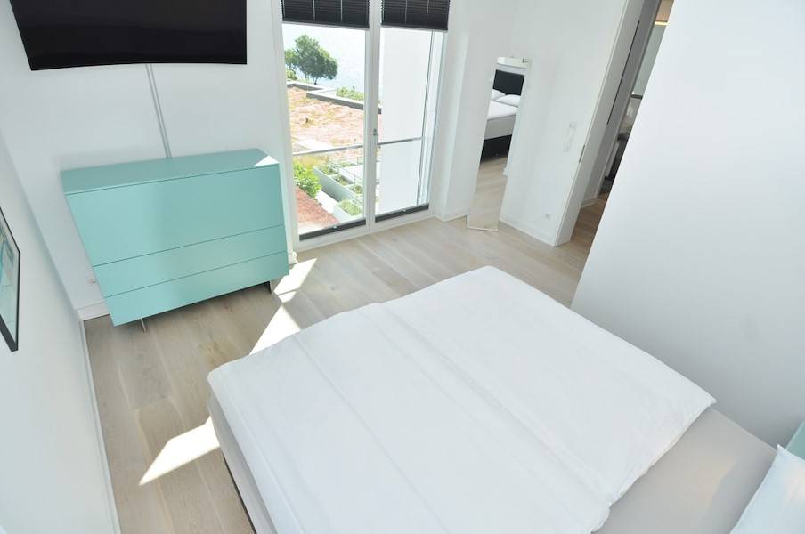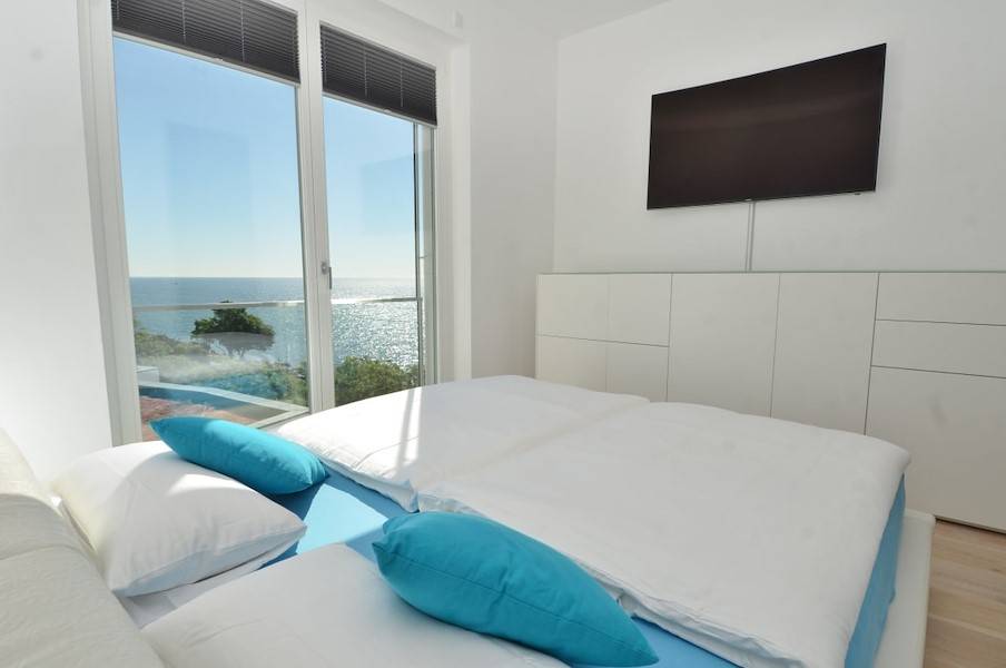 Zwei luxuriös eingerichtete Schlafzimmer, ebenfalls mit sensationellem Meerblick verfügen über je 1 Boxspringbett bzw. 1 Doppelbett, einen eigenen Samsung Curved ULTRA HD Smart –TV und DVD - Blu -Ray - Player sowie genügend Stauraum für Ihre Urlaubsgarderobe und ermöglichen entspannte, ruhige Stunden.