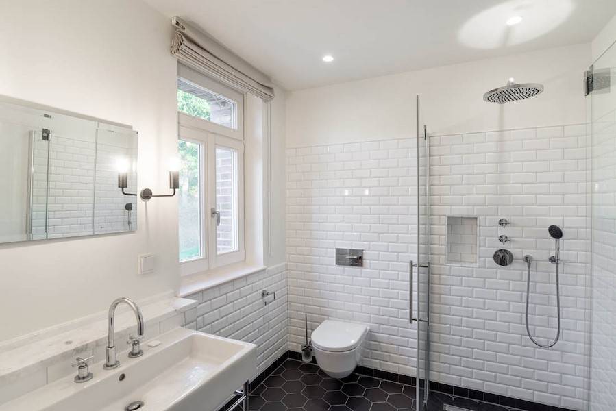 Badetuch Fenster Fußbodenheizung Haartrockner Handtuch Spiegel Waschbecken WC