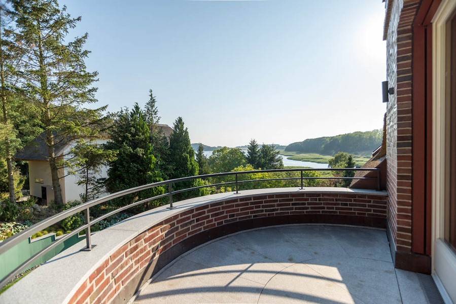 Wer viel Freiraum schätzt, wird sich hier garantiert wohlfühlen. Der großzügige Wohnbereich mit gemütlichen Polstermöbel vor dem Kamin ist eine wahre Wohlfühloase. Mehrere Flügeltüren führen auf die Terrasse, von der sich ein neuer Horizont eröffnet. Der traumhafte Ausblick von der erhabenen Lage auf die sich öffnende Having und den Yachthafen ist grandios.