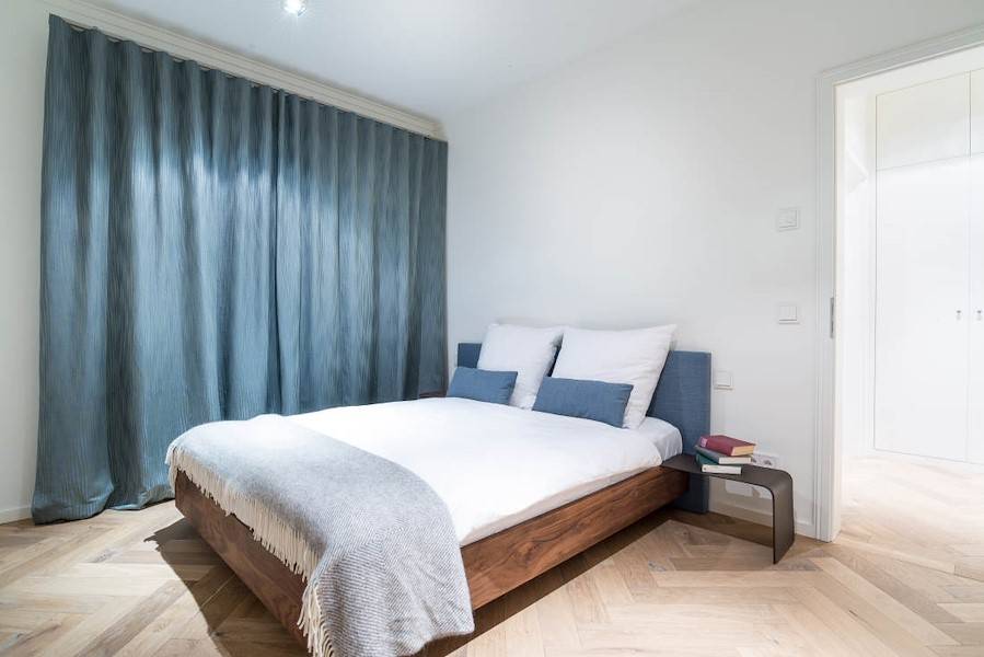 Doppelbett Fenster Fußbodenheizung Kleiderschrank Vorhänge