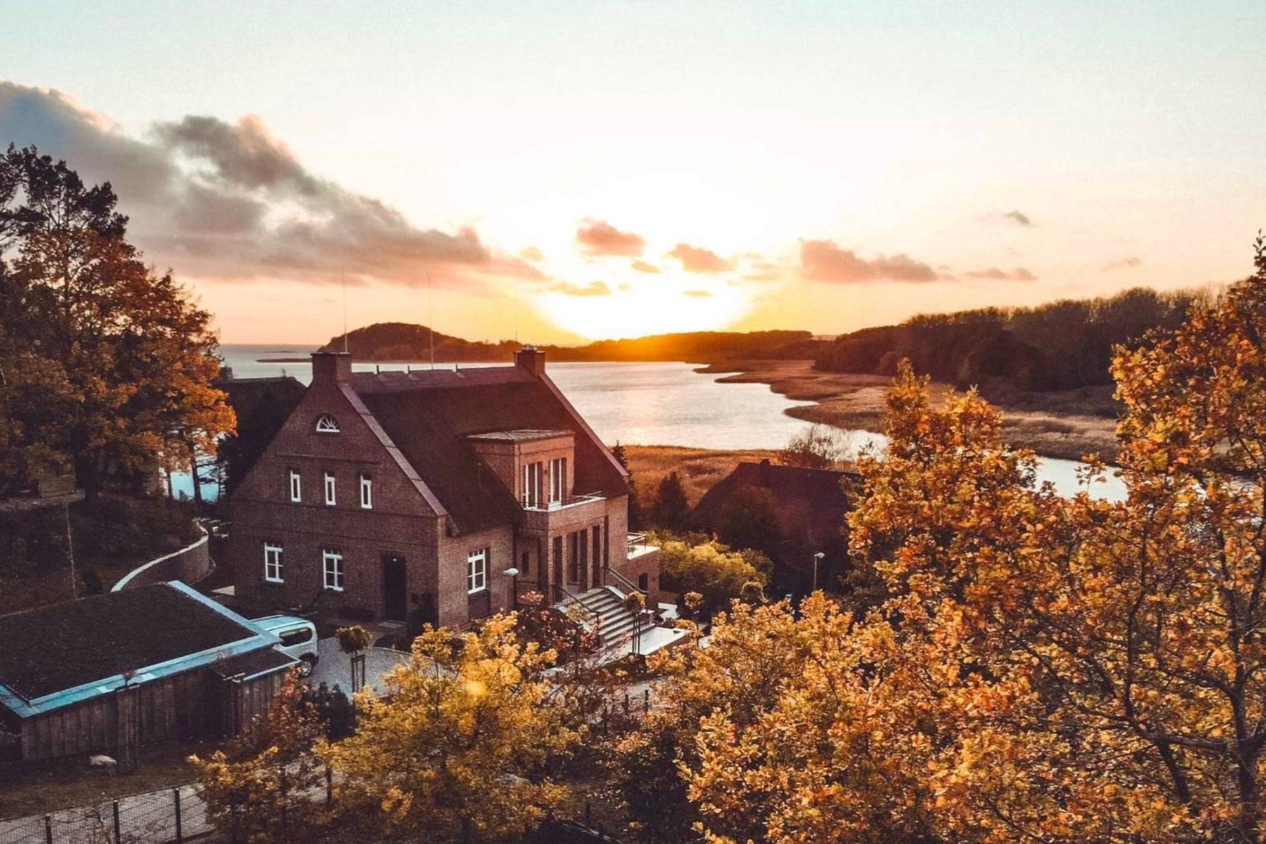 Allein die Lage der Ferienwohnung Sea Lounge in Seedorf ist ein Grund, sich hier für ein paar Tage oder Wochen nieder zu lassen. Nahezu am Ende der Straße, die parallel zum Yachthafen und der Having verläuft, thront die Villa mit der Ferienwohnung Sea Lounge hoch oben auf einem Berg.