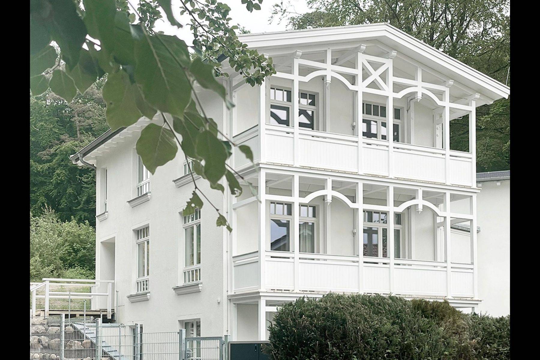 Das Ferienhaus „Elise“ besitzt den Charme der klassischen Bäderarchitektur und lockt mit zwei gemütlichen Balkonen. Von hier aus genießen Sie den Blick über den Ort bis hin zur Granitz. Sie schauen über den Horizont in den Sonnenuntergang und hören dabei die 100jährigen Buchen rauschen.
