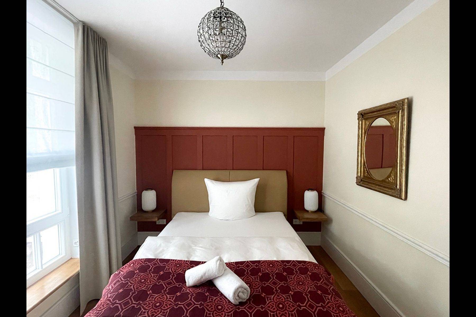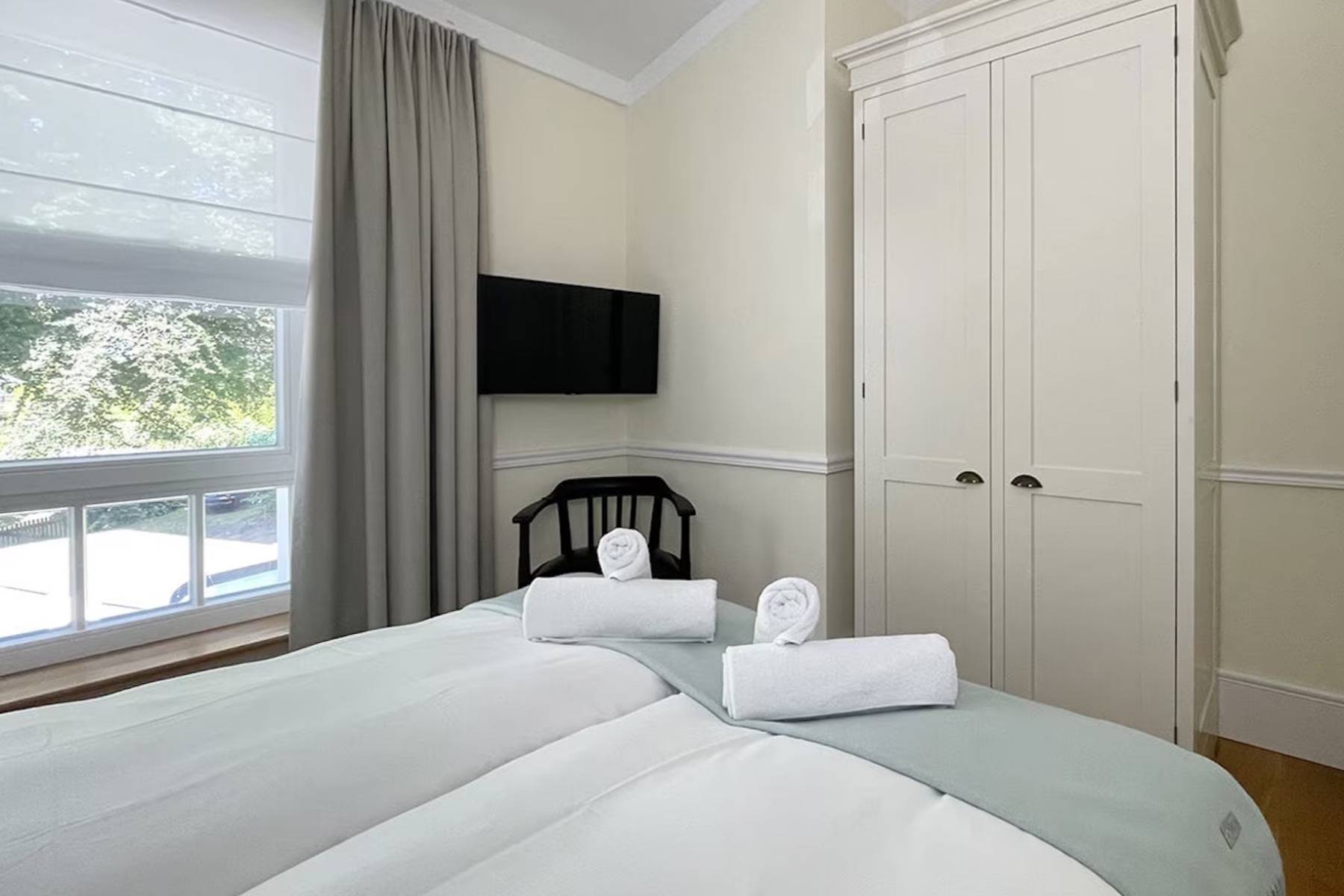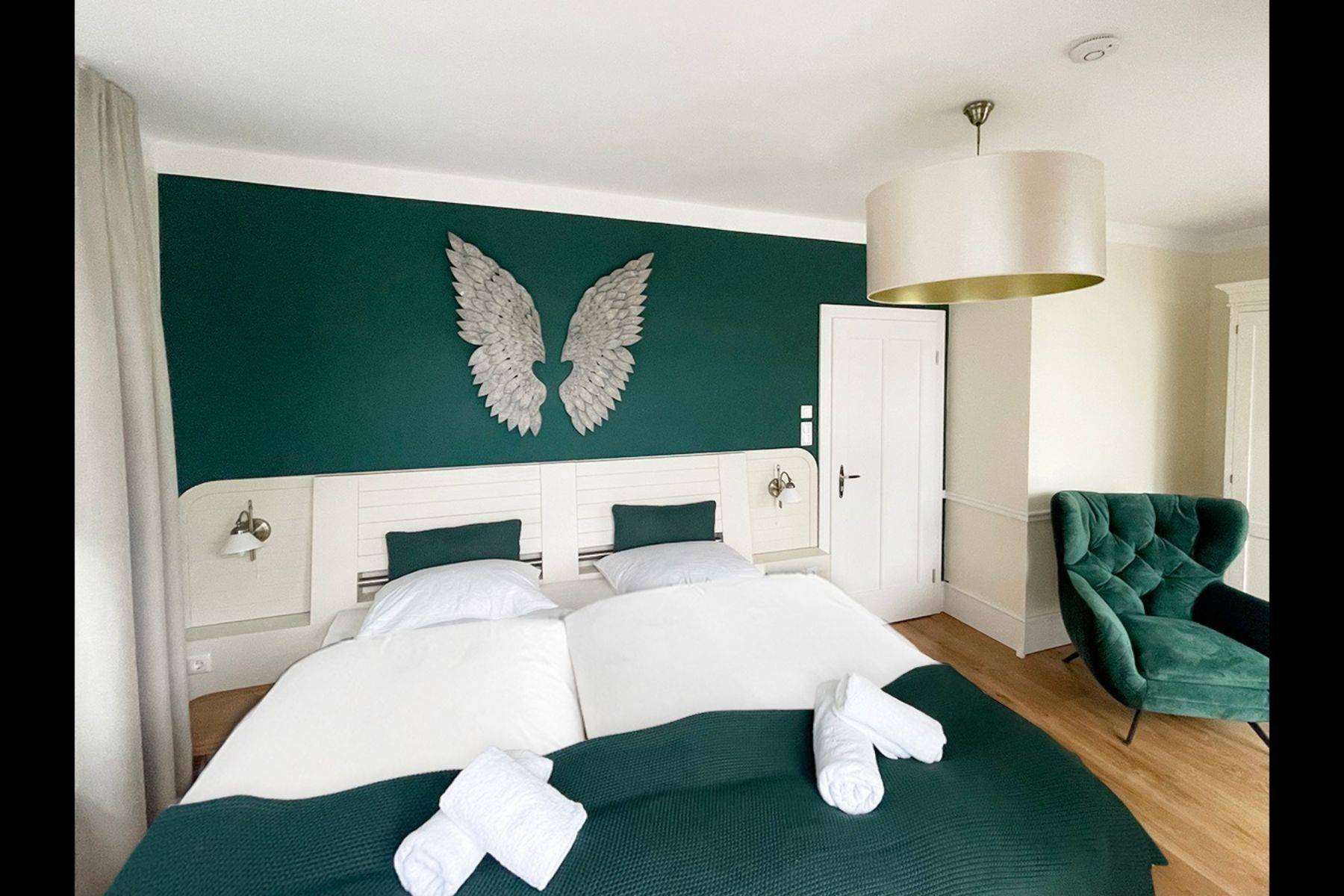 Sie schlafen in drei separaten Schlafzimmern. Unsere Deluxe-Doppelbetten verfügen über eine Überlänge von 220 cm oder 210 cm, ideal für große Gäste. Alle Matratzen (H3/4) sind mit einem Topper ausgestattet.
