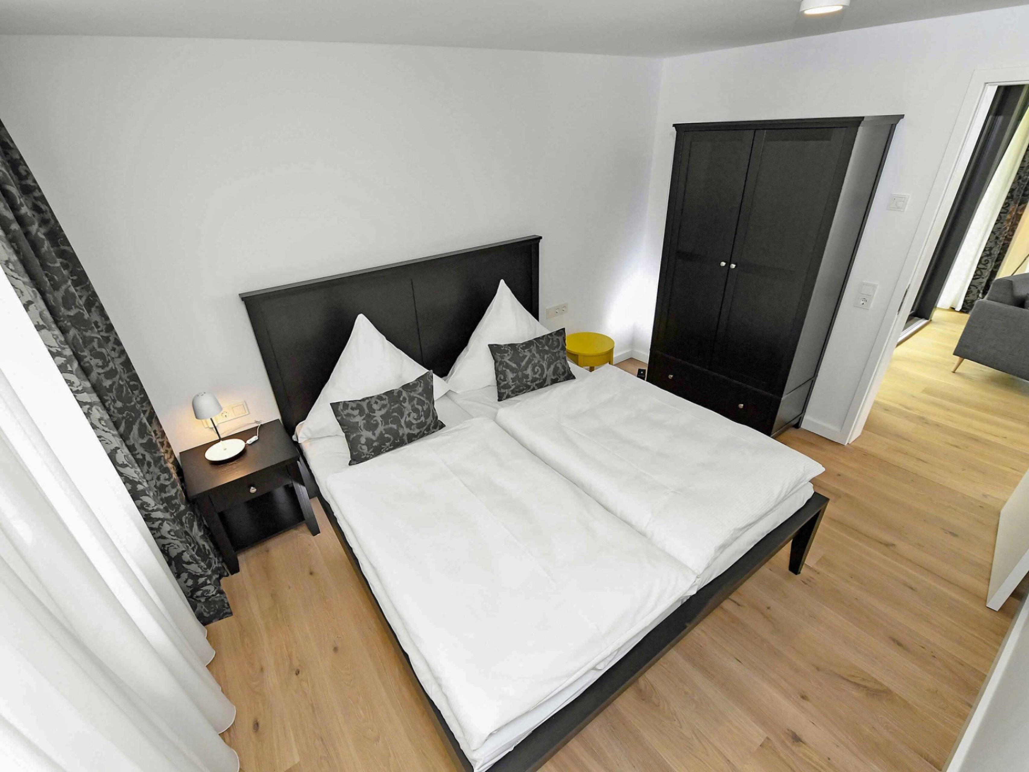 Doppelbett Fenster Flatscreen Fußbodenheizung Kleiderschrank Vorhänge