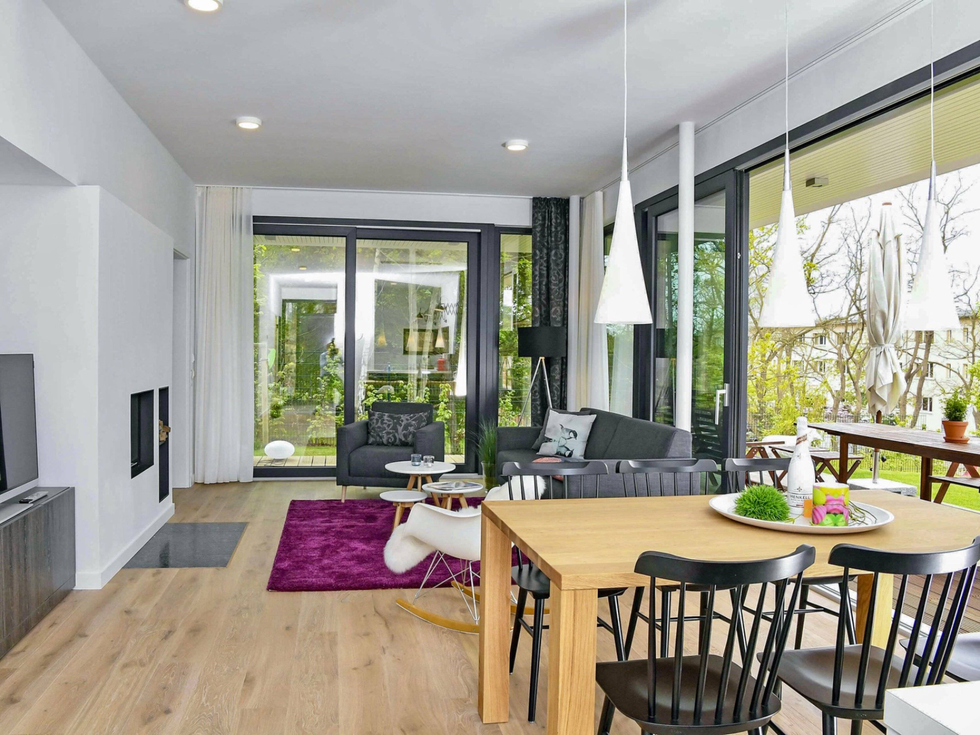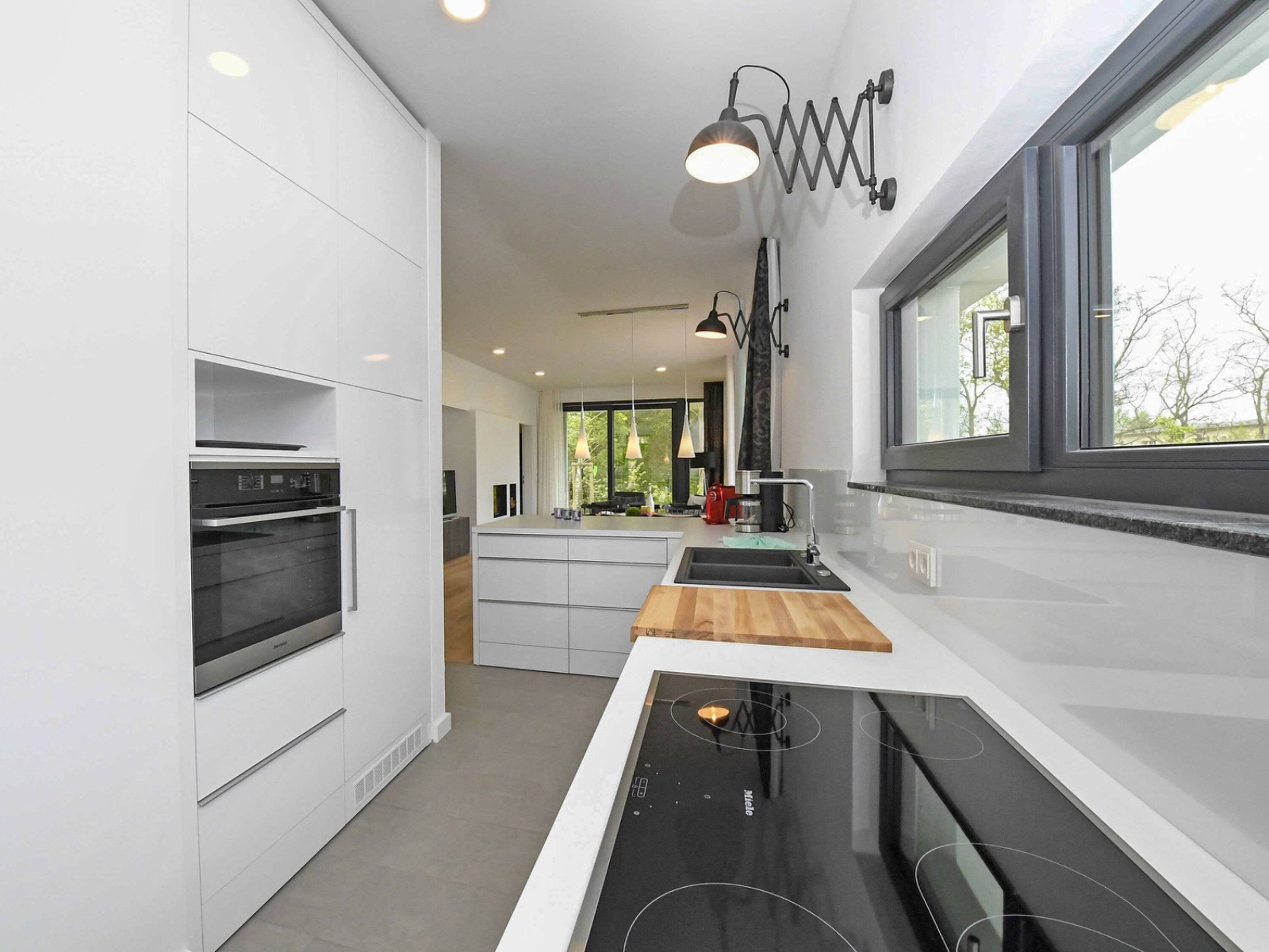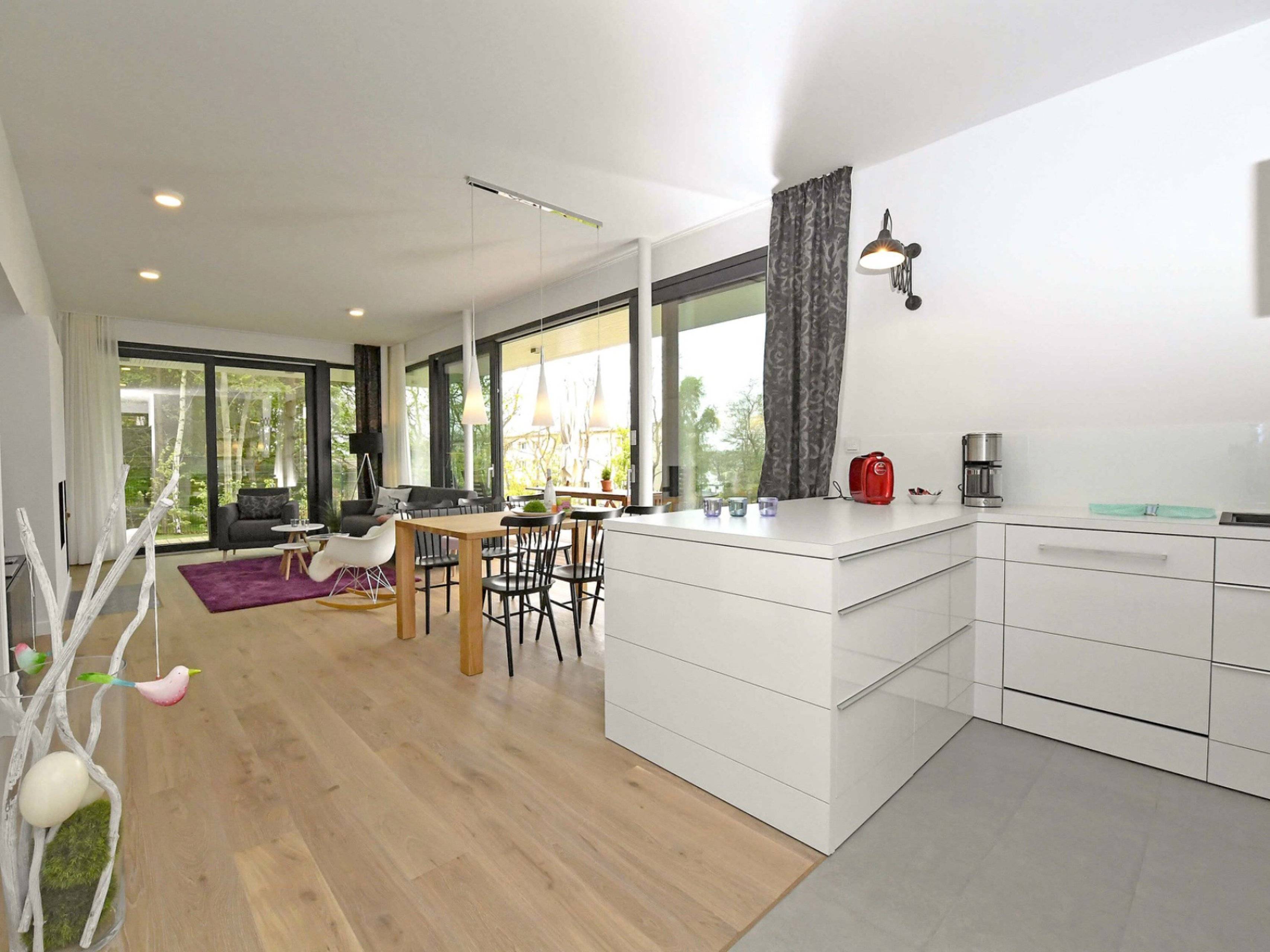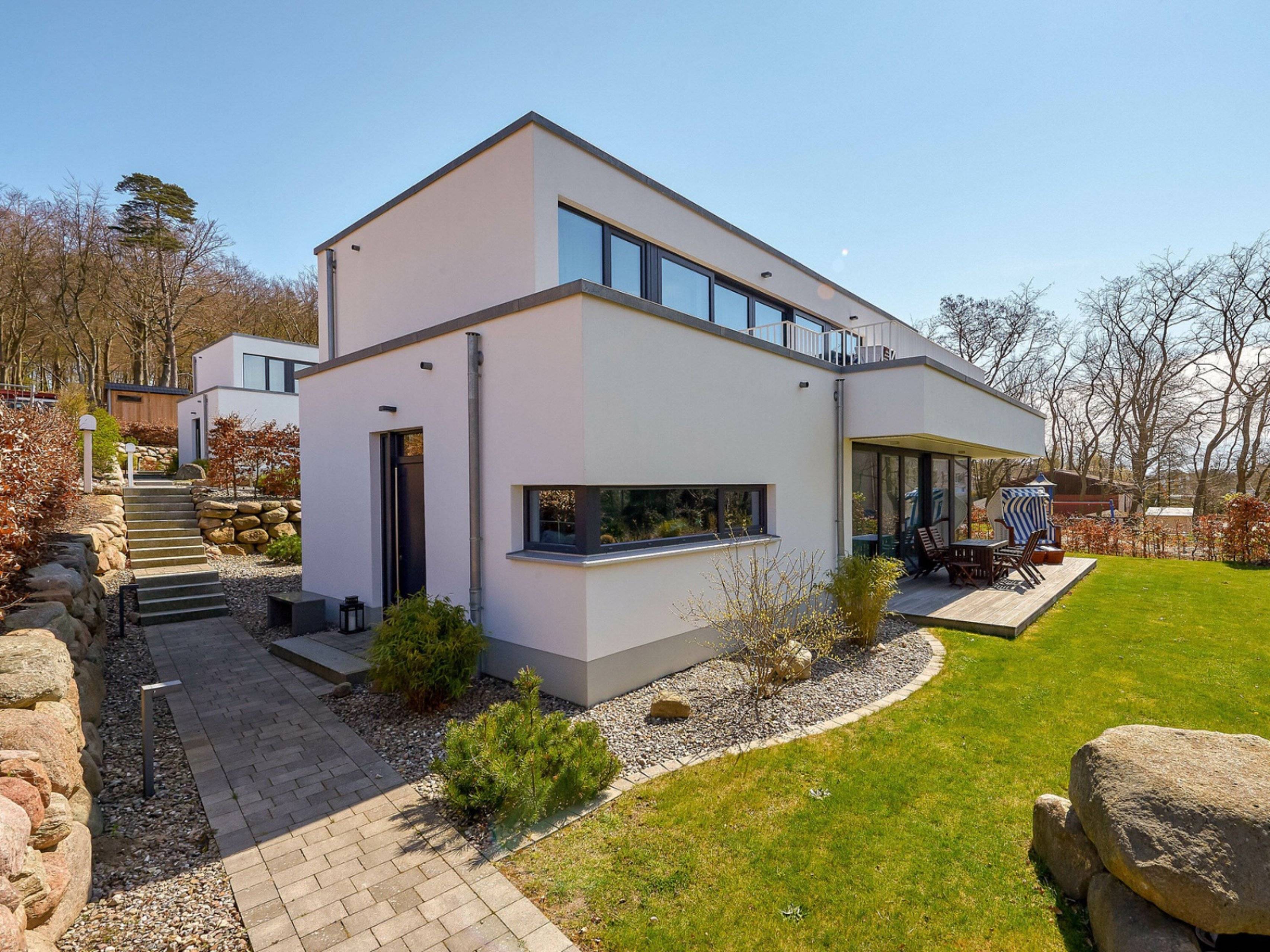 Die Ferienwohnung Windhus in Sellin ist im modernen Bauhausstil errichtet und neben einer Fußbodenheizung auch mit einem Kamin ausgestattet.